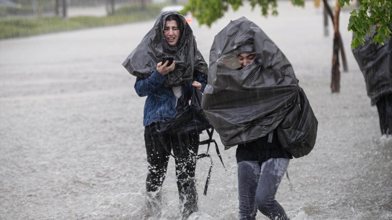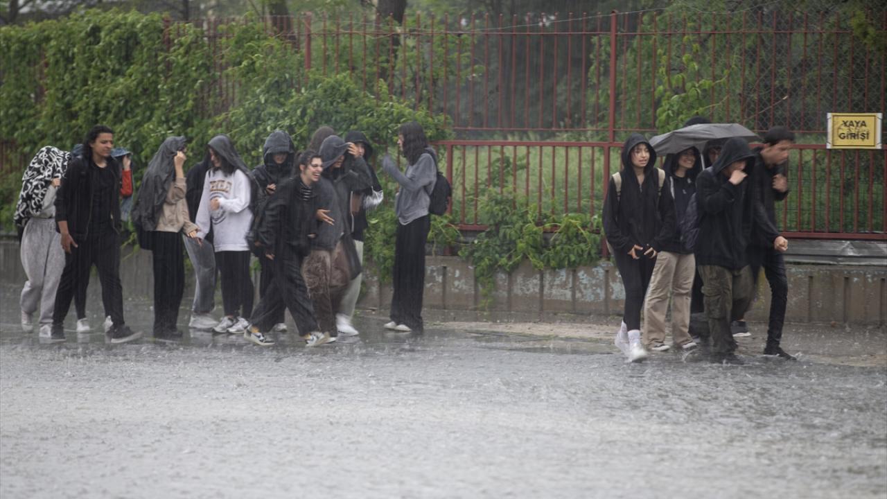 Eryaman`da evlerine gitmek için okuldan çıkan öğrenciler yağış nedeniyle zor anlar yaşadı.