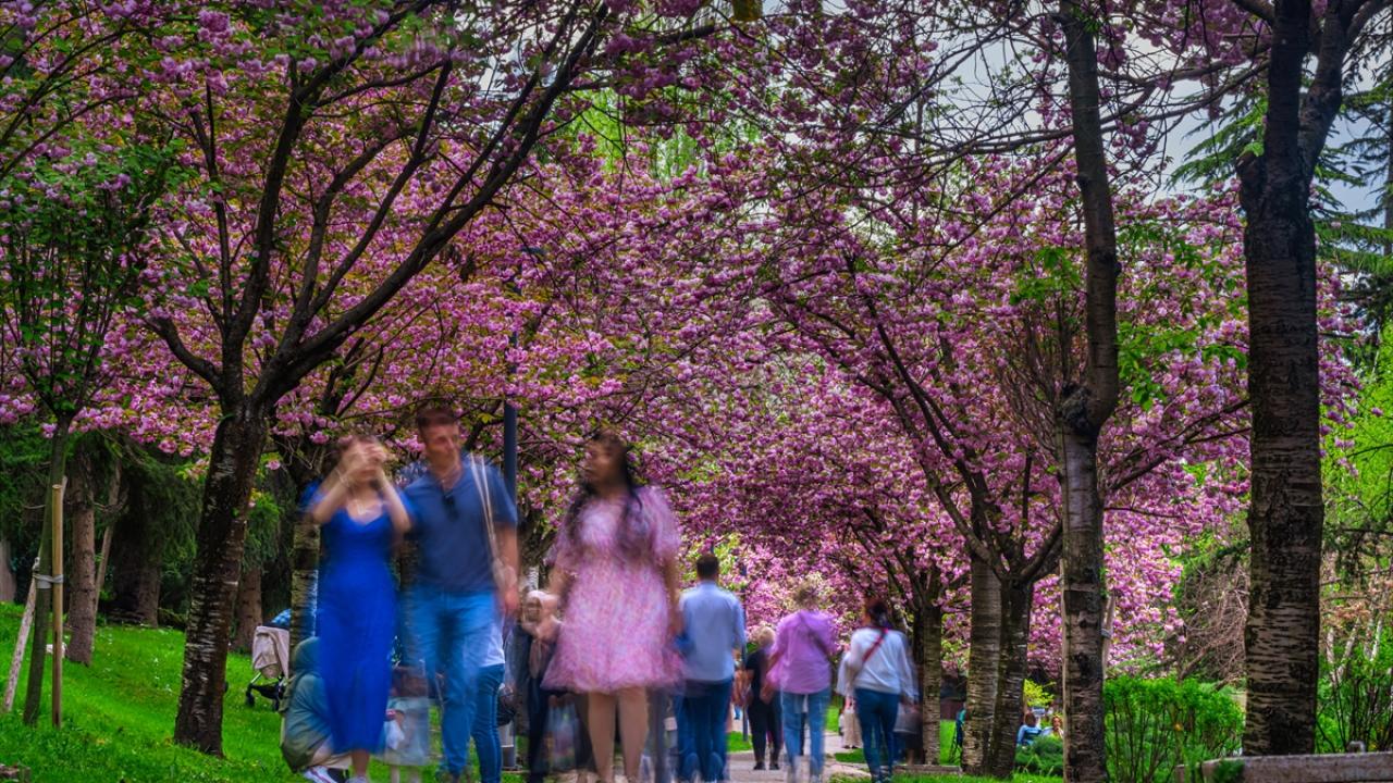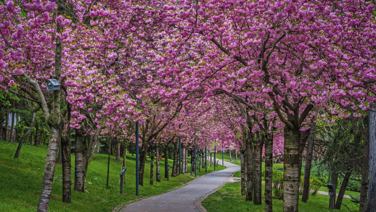 Ankara'da baharın gelmesiyle Dikmen Vadisinde çiçek açan Japon Kirazı (Sakura) ağaçları, güzel görüntüler oluşturdu.