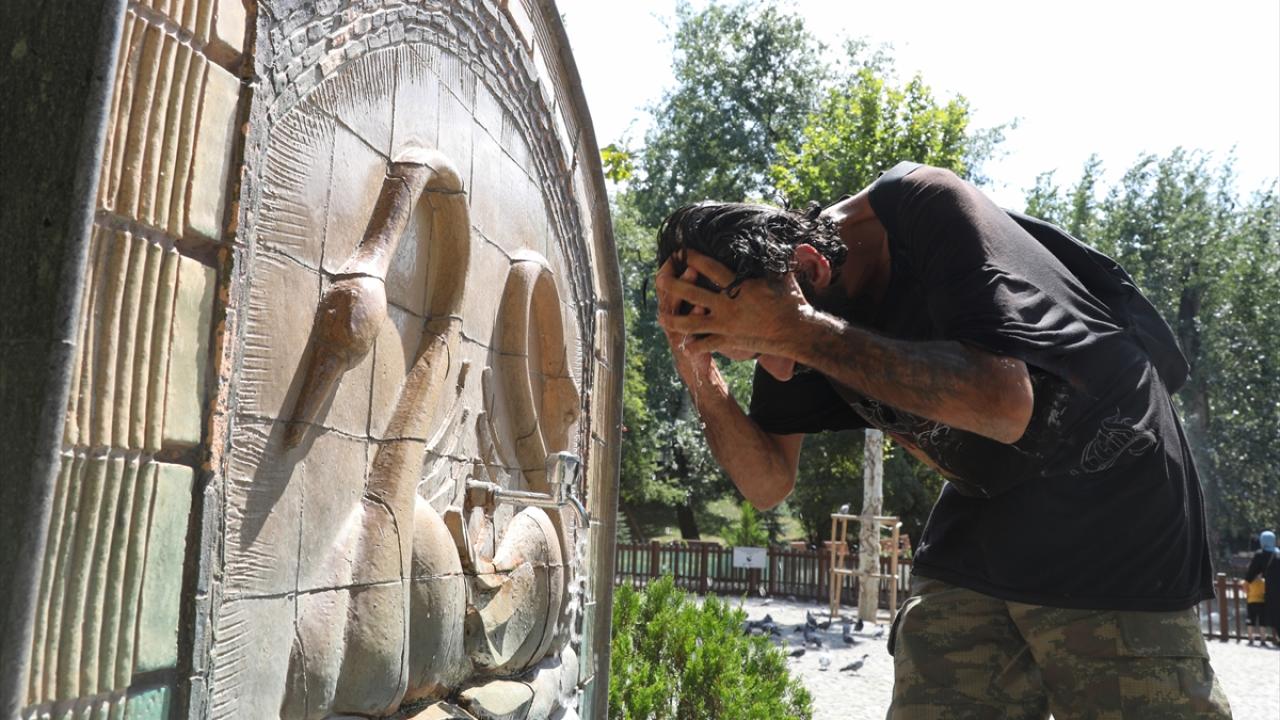 Ankara'da sıcak havadan bunalan vatandaşlar, parklar, gölgelik alanlar ve su kenarlarında dinlenirken, bazıları da parklardaki çeşmelerde serinledi.