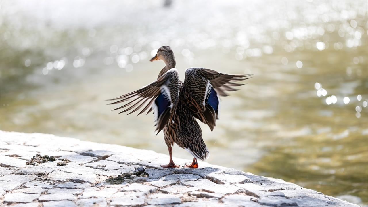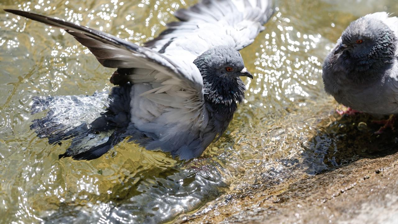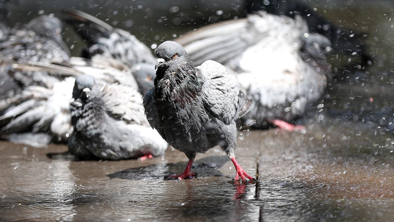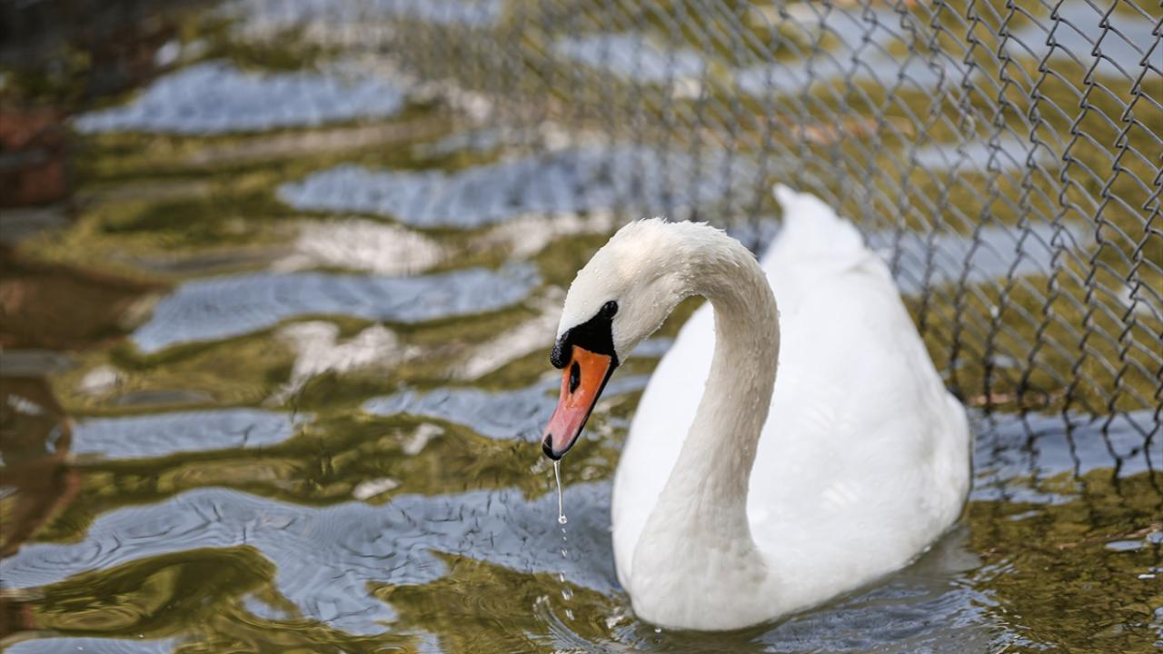 Sıcaktan etkilenen hayvanlar, Kuğulu Park`taki havuzda ve fıskiyelerde serinlemeye çalıştı.