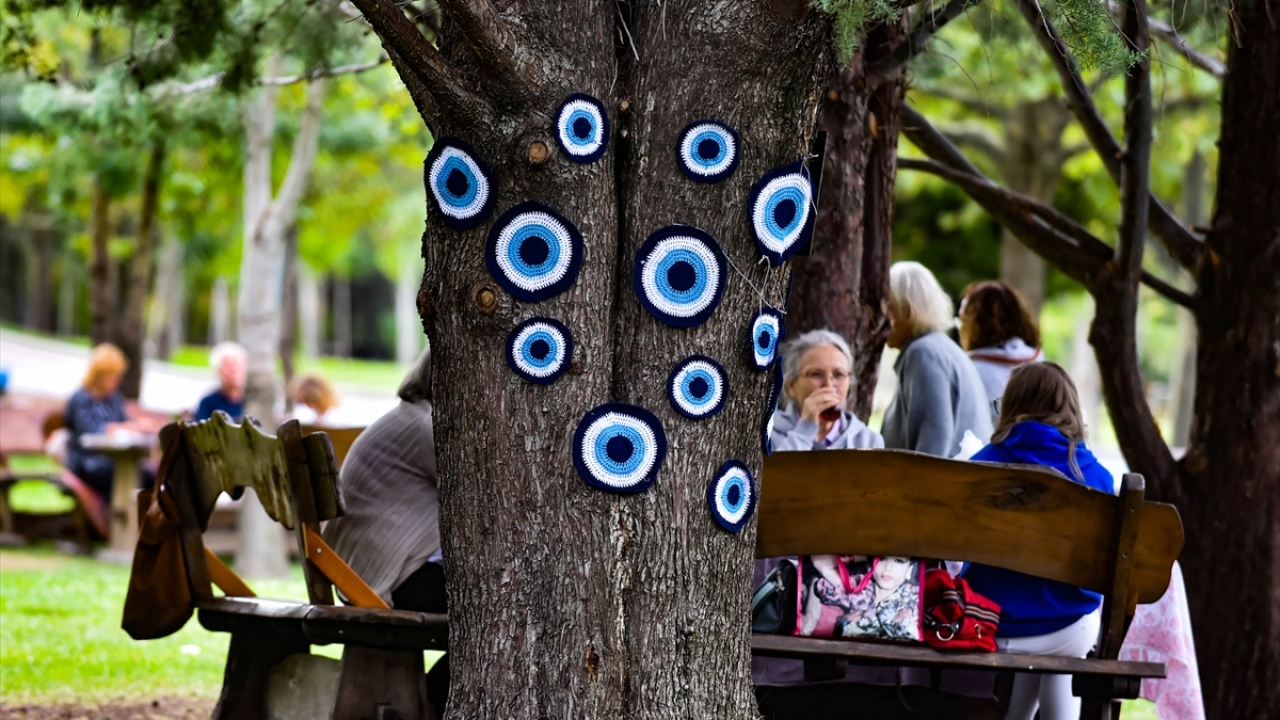 Kadın ve Aile Şube Müdürlüğünce, şiddet mağduru kadınların güçlenmesine katkı sağlamak amacıyla düzenlenen etkinlikle nazar boncuğundan uğur böceğine çeşitli motiflerle hazırlanan örgülerin ağaçlara giydirilmesiyle parklar renklendirilirken, kadınların da el emeği görünür kılındı.