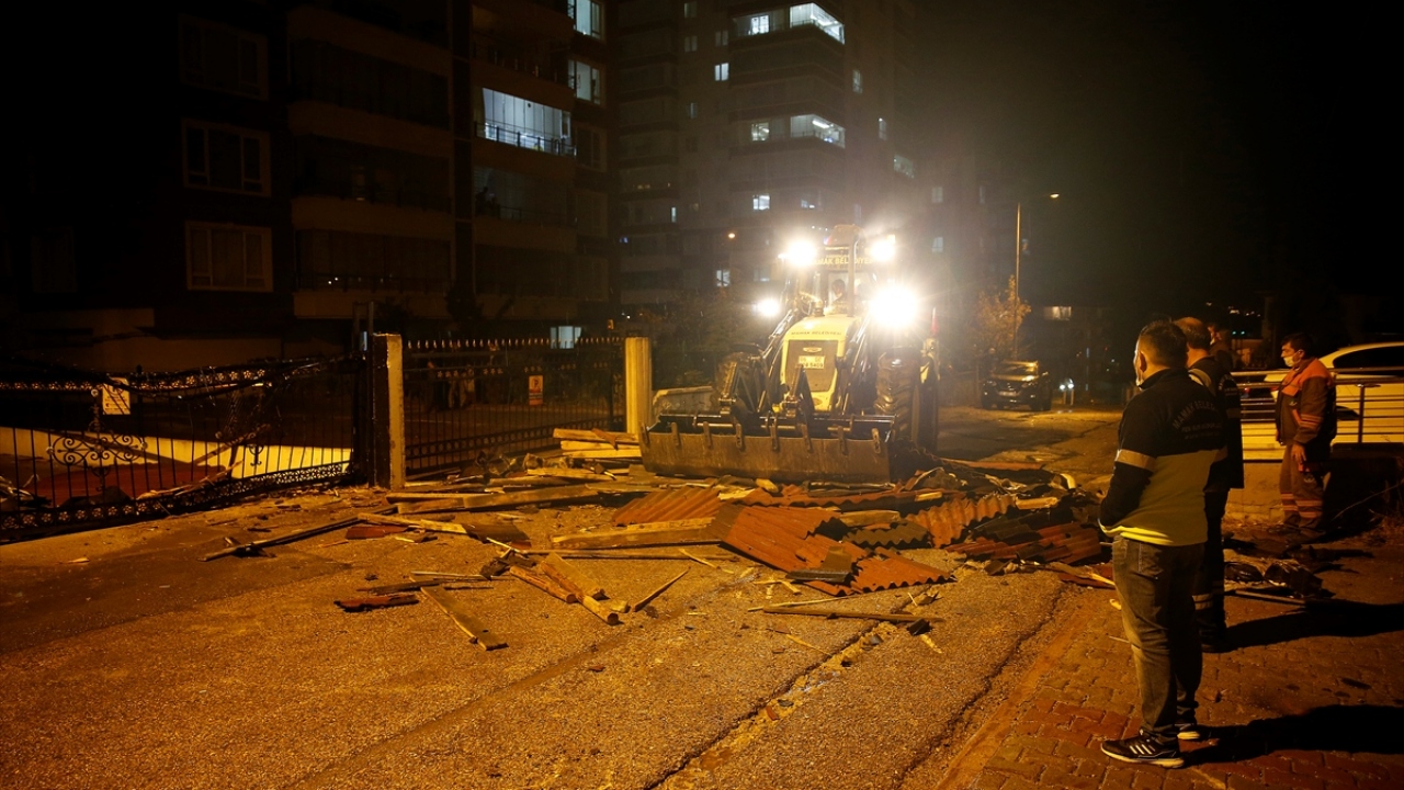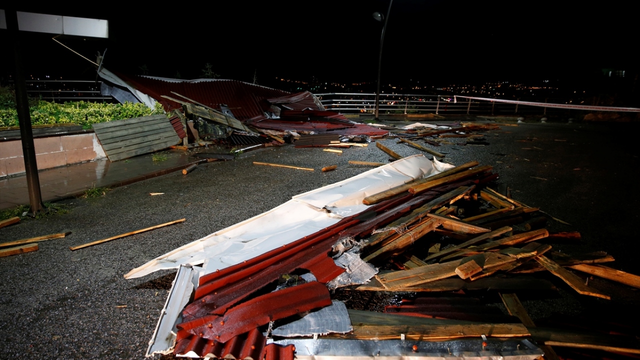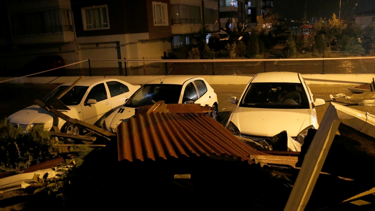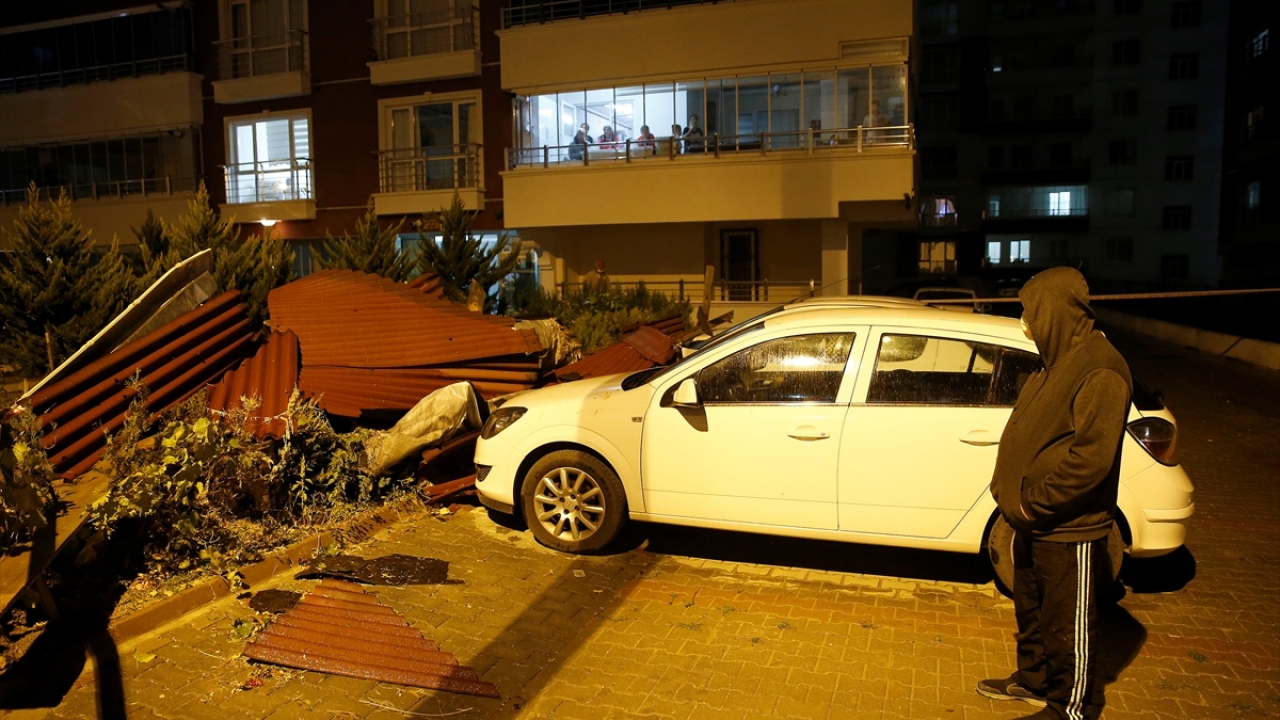 Kuvvetli rüzgar nedeniyle 2 binanın çatısı uçtu, 4 otomobilde hasar oluştu.