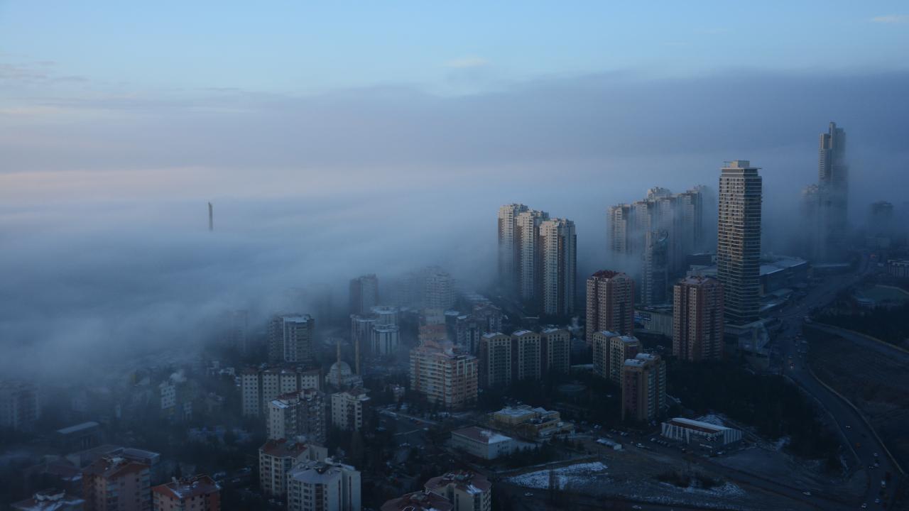 Ankara'da, kentin yüksek kesimlerinde sabah saatlerinden itibaren sis etkili oluyor.