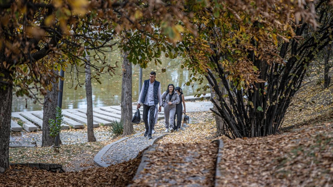 Çankaya ilçesindeki Seğmenler Parkı`na gelen vatandaşlar dökülen yaprakların arasında keyifli vakit geçirdi.