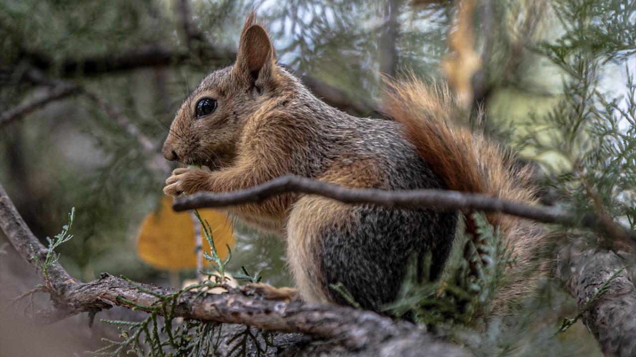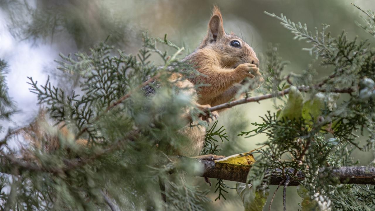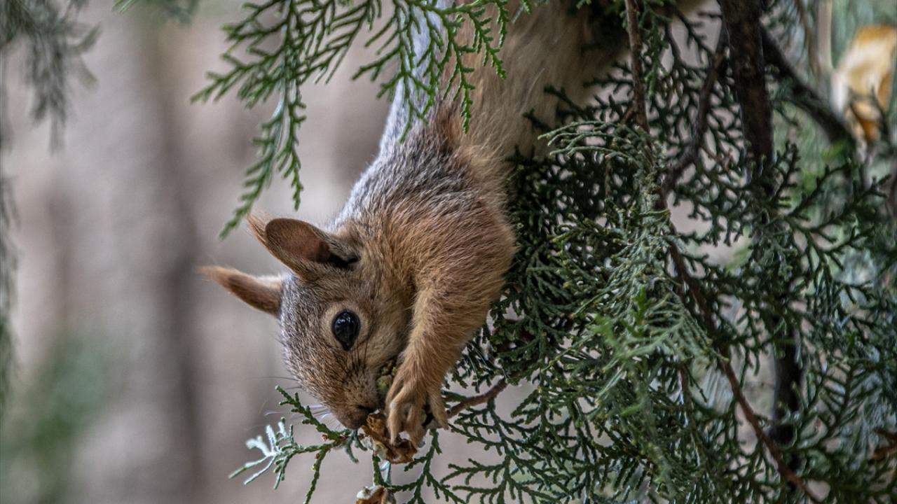 Parkta yaşayan sincaplar ise gün içerisinde yuvalarından ayrılarak yiyecek arıyorlar.