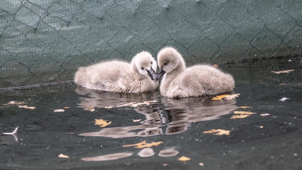 Çankaya ilçesindeki Seğmenler Parkı`nda dökülen yaprakların arasında bulunan yavru kuğular, parktaki ziyaretçilerinin ilgi odağı oldu.