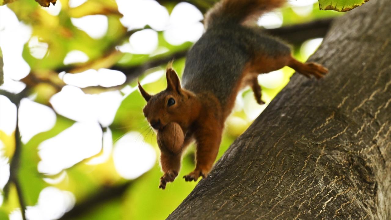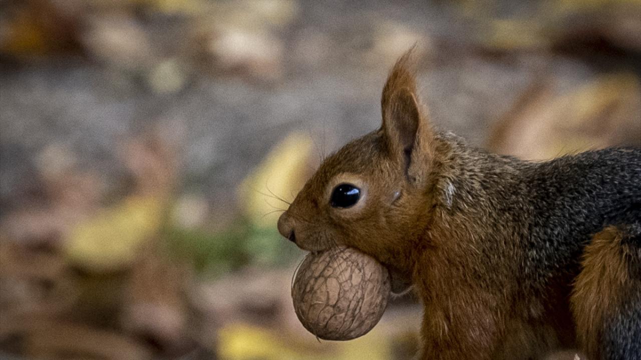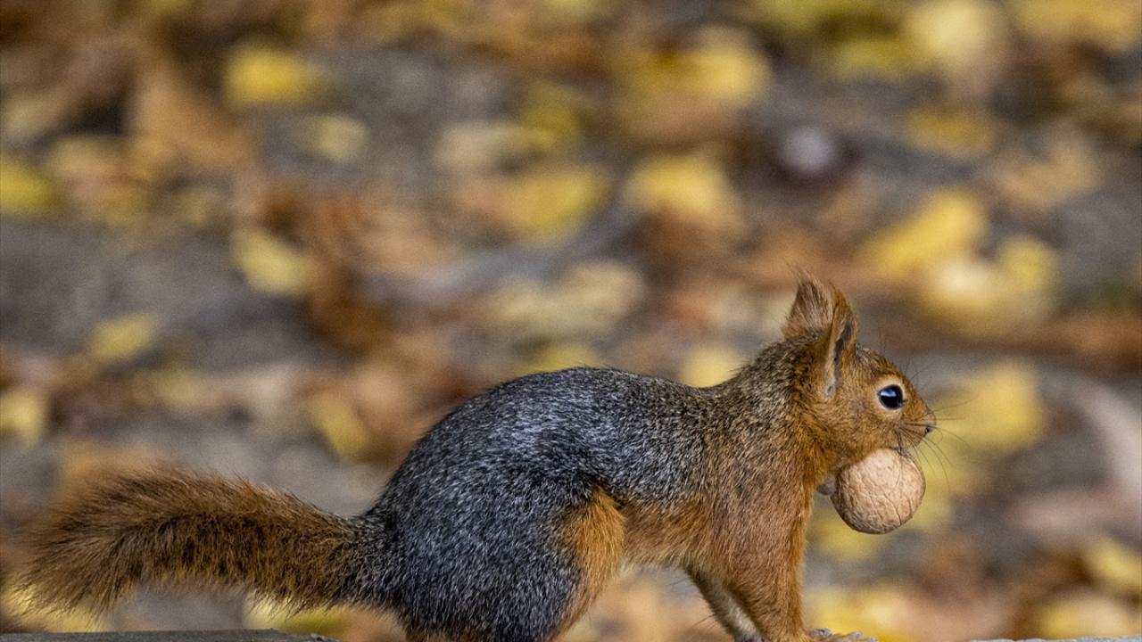 Çankaya ilçesindeki parklarda sararan yaprakların arasında görülen sincaplar ise kış hazırlıkları için ceviz topladı.
