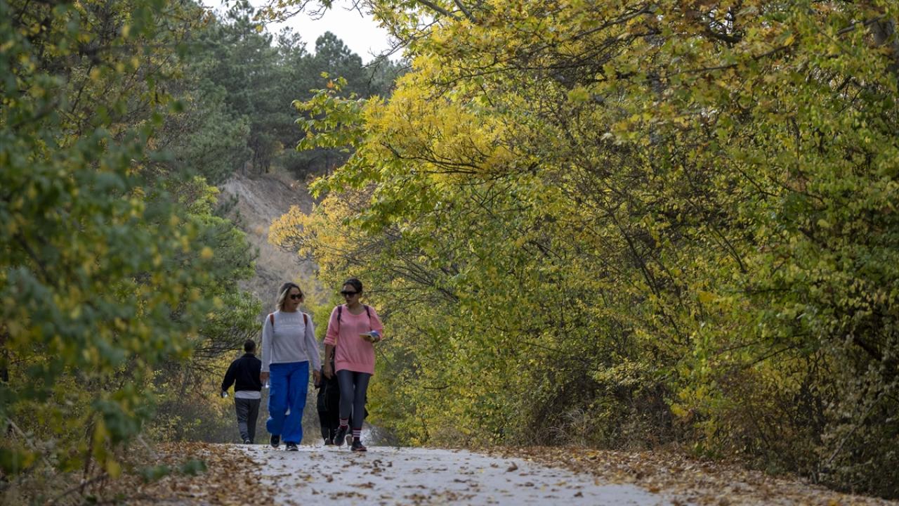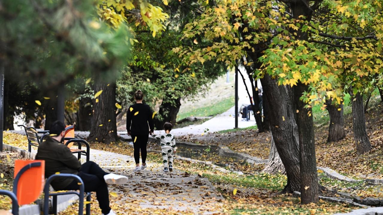 Çankaya ilçesindeki parklarda dökülen yaprakların arasında yürüyüş yapan doğaseverler keyifli vakit geçirdi.