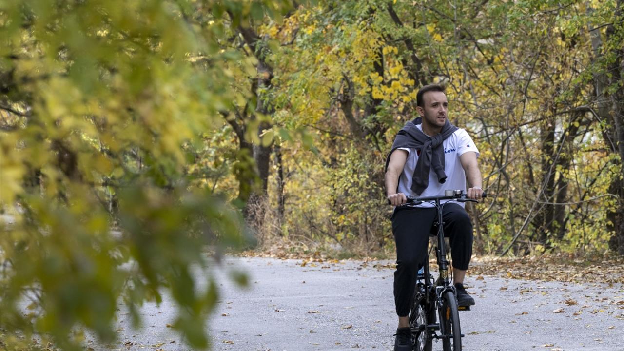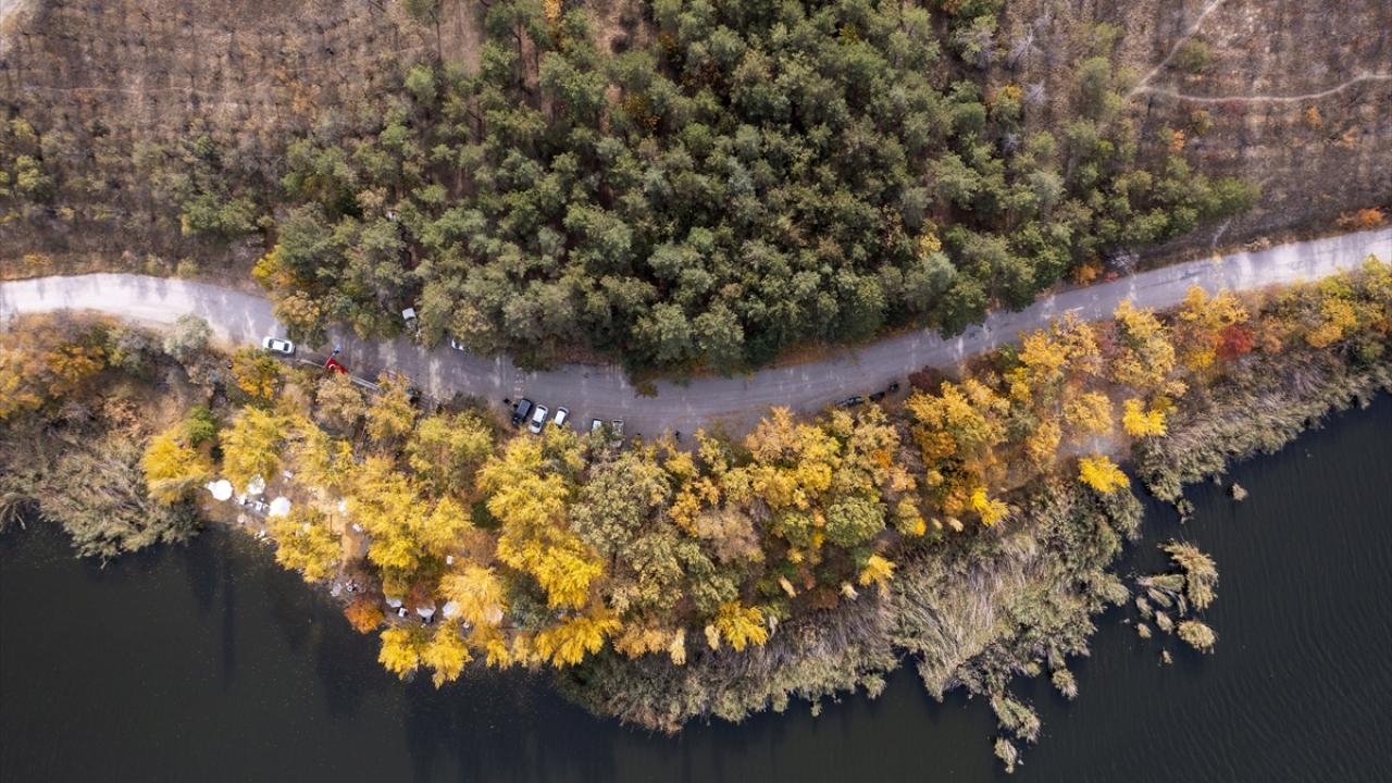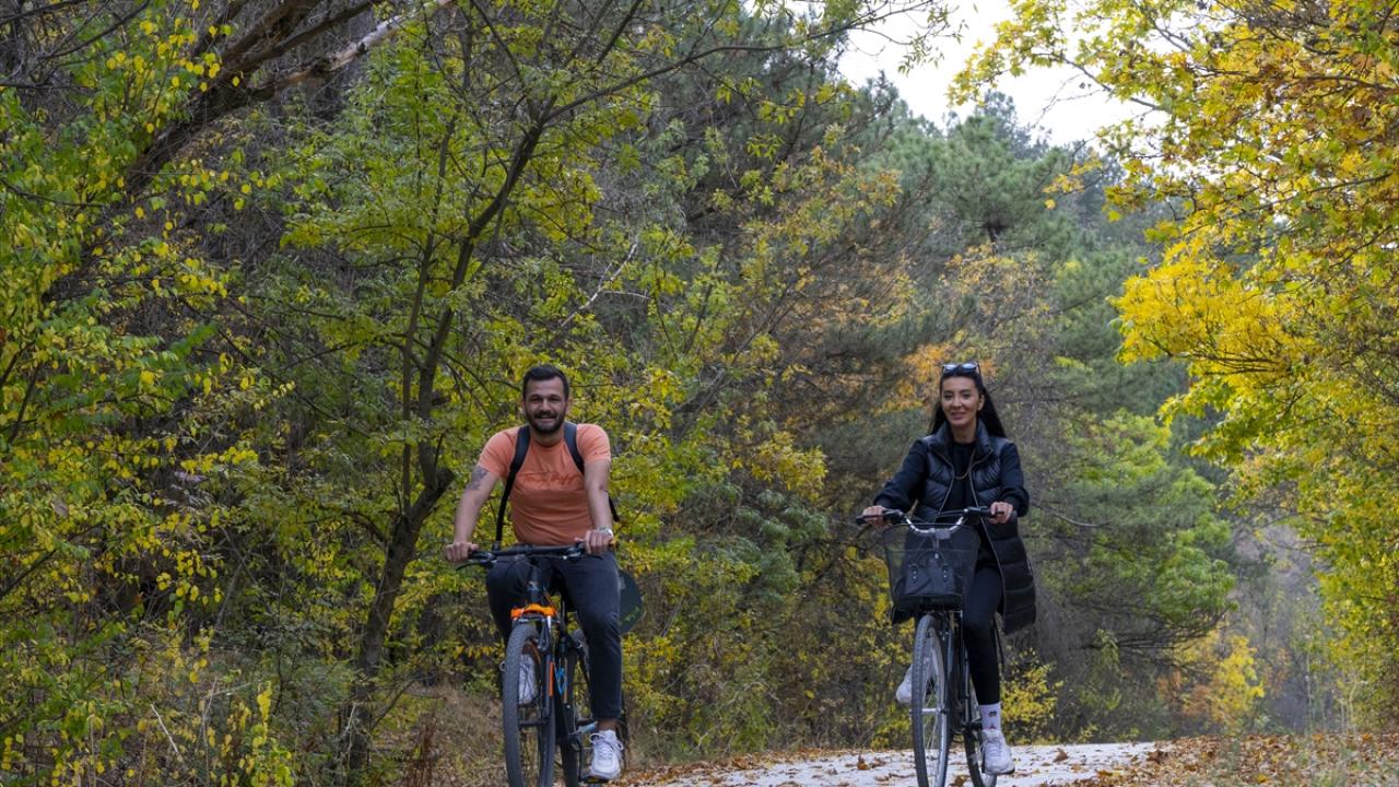 Gölbaşı ilçesindeki Eymir Gölü’nde dökülen yaprakların arasında bisiklete binen ve yürüyüş yapan doğaseverler keyifli vakit geçirdi.