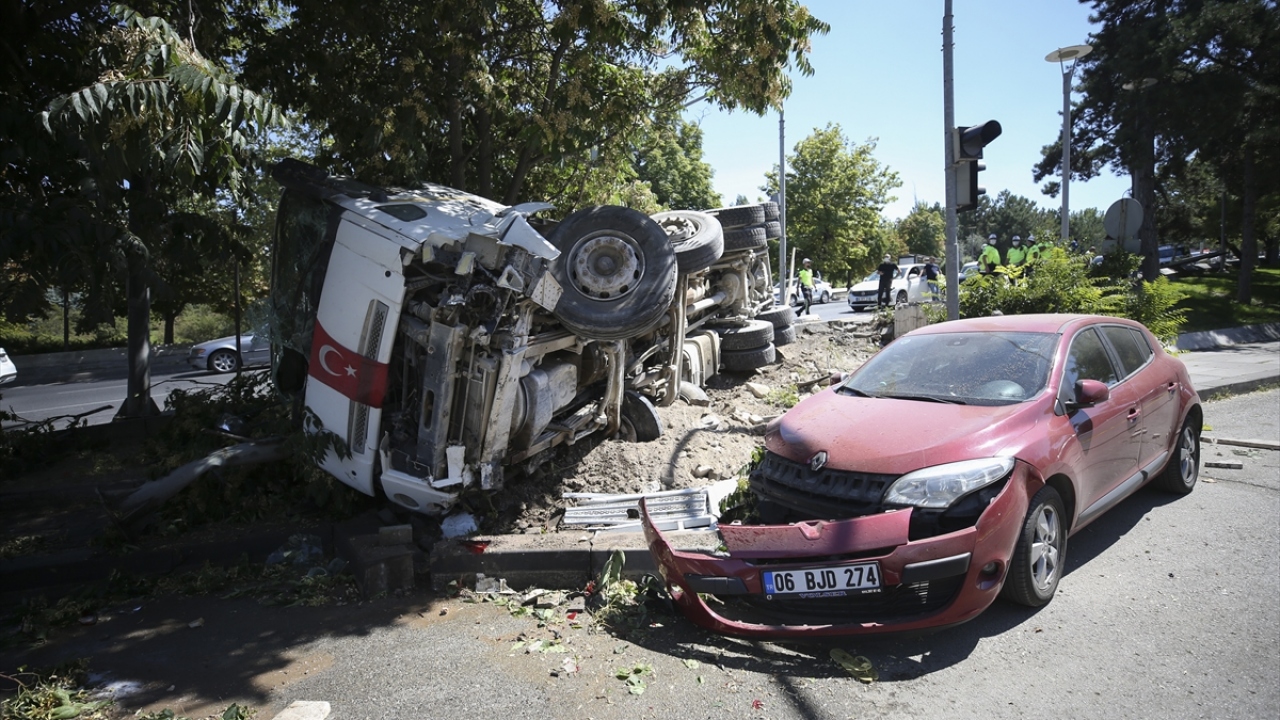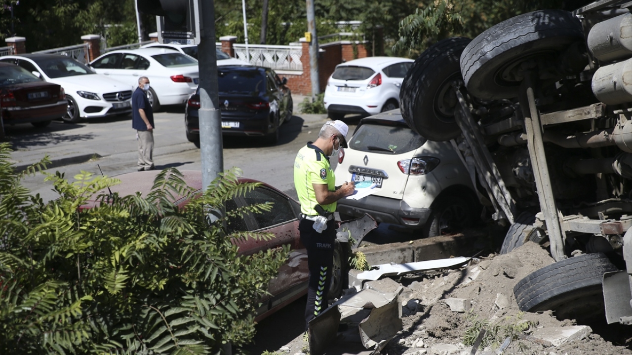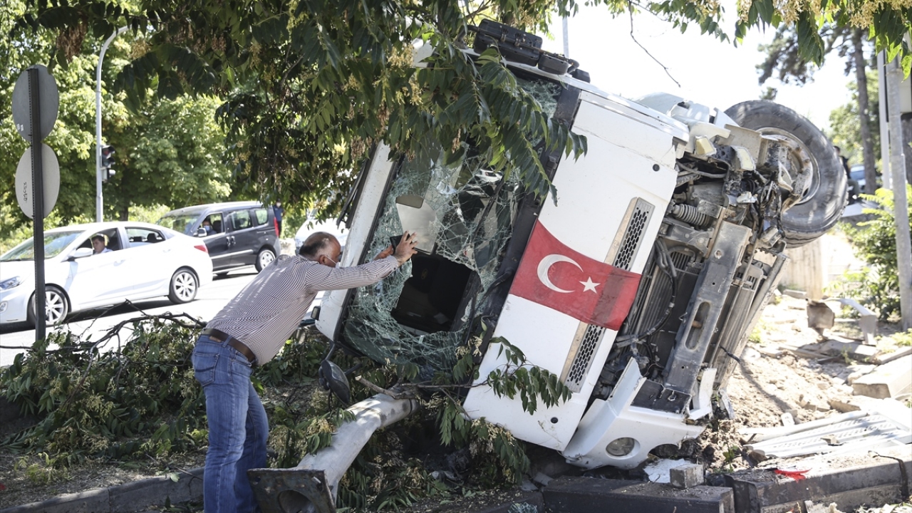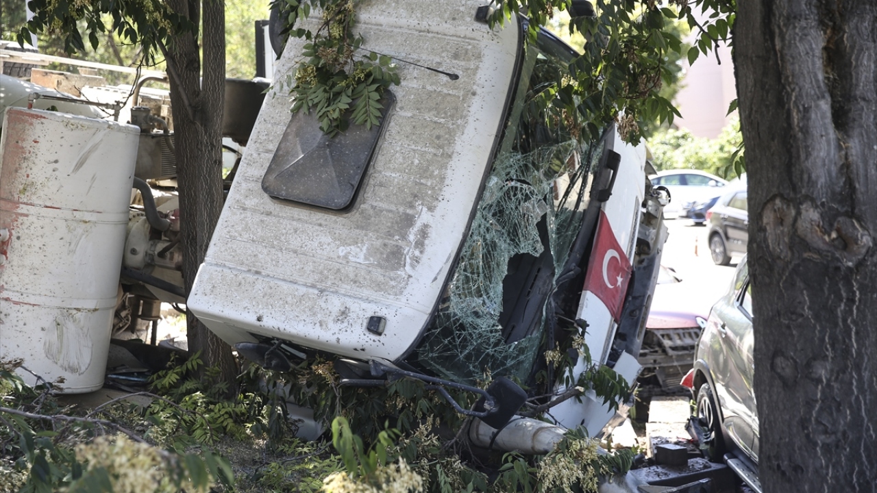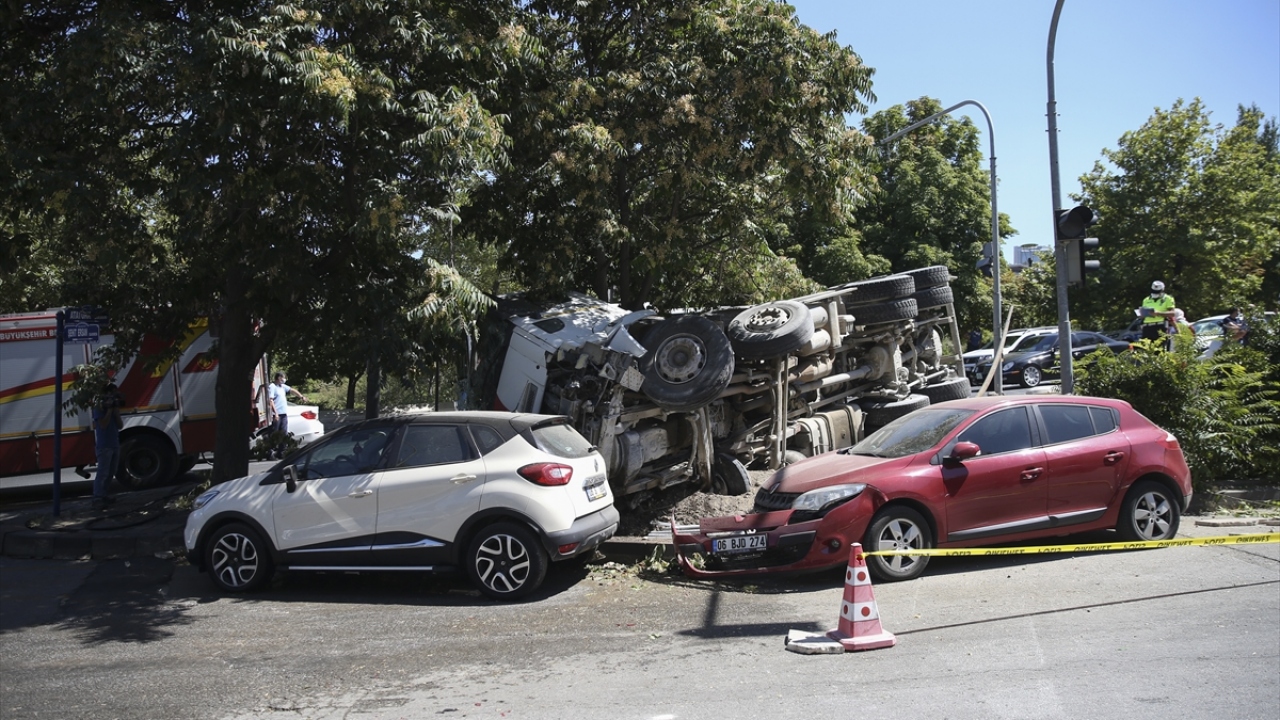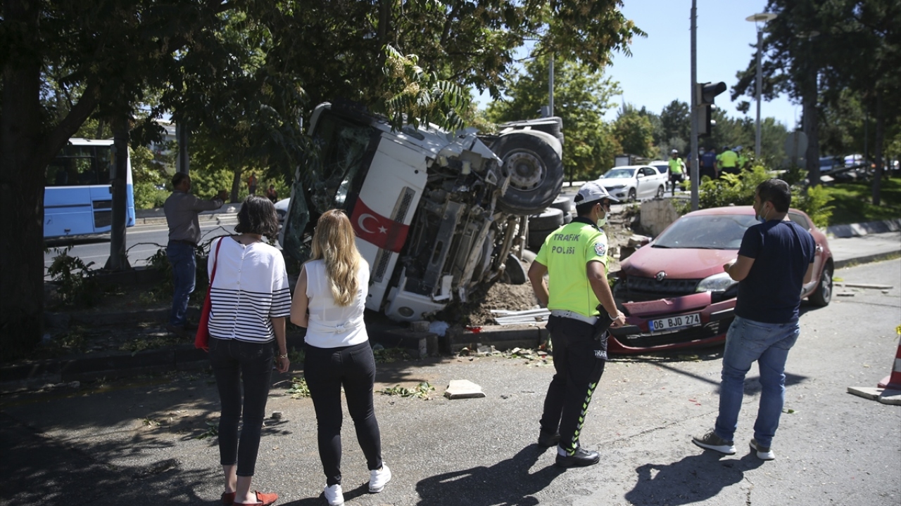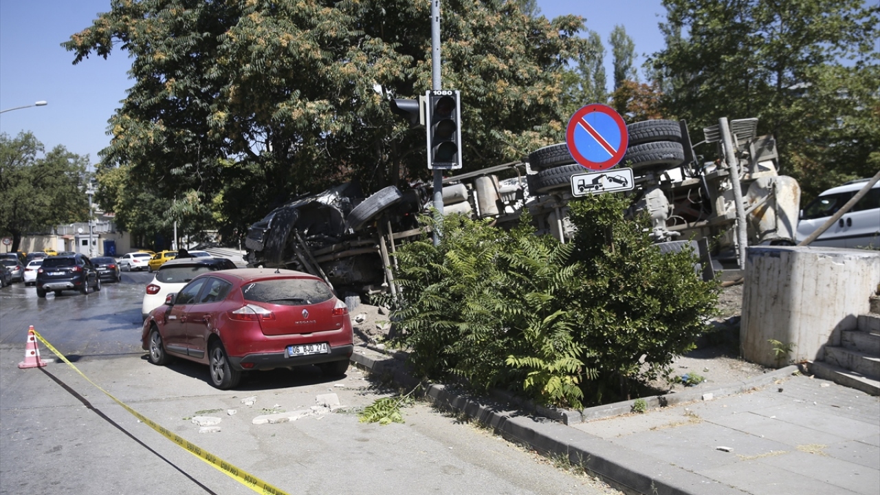 Başkentte, Atatürk Bulvarı'ndan 15 Temmuz Kızılay Milli İrade Meydanı istikametine giden beton mikseri, trafik ışıklarına çarpmasının arıdından devrildi.