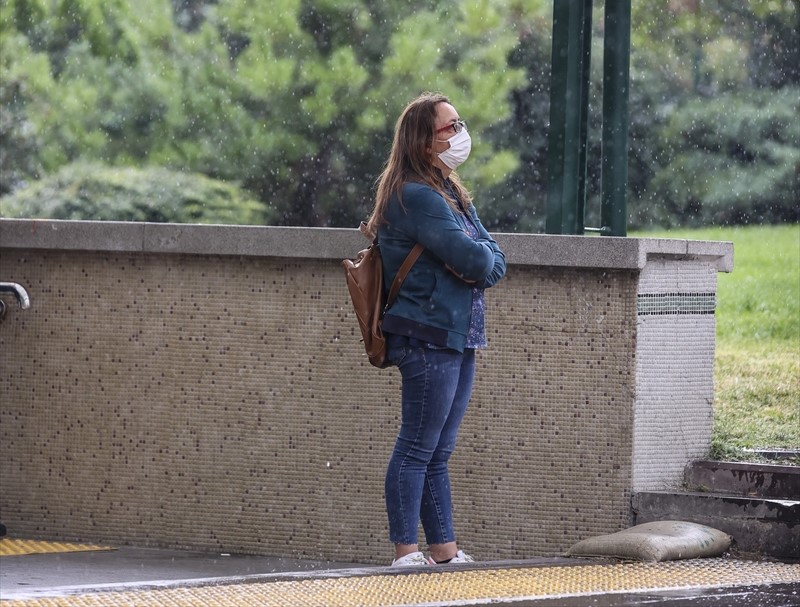 Sağanağa yakalananlar metro girişlerinde yağışın geçmesini bekledi.