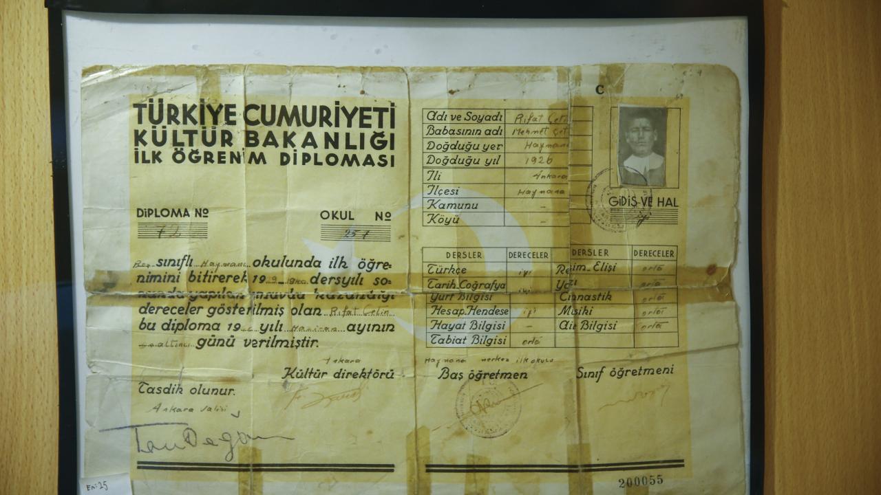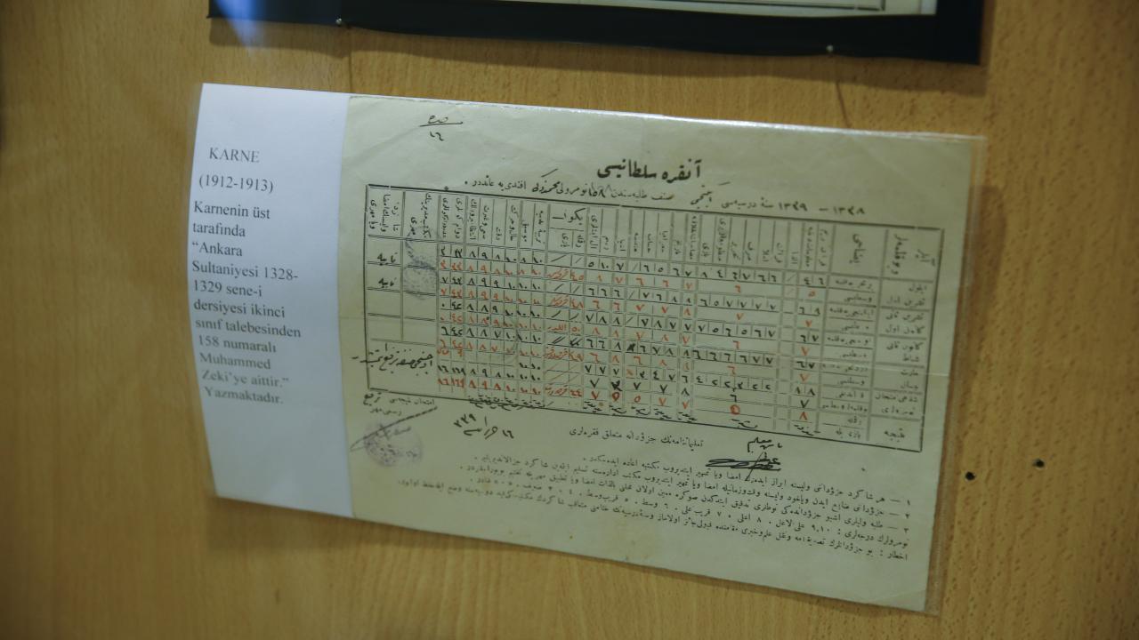Okumuşoğlu, müzedeki en eski eserin 1912-1913 yıllarına ait bugünkü adı Ankara Atatürk Lisesi olan Ankara Sultanisi tarafından bir öğrenciye verilen karne olduğunu bildirdi.