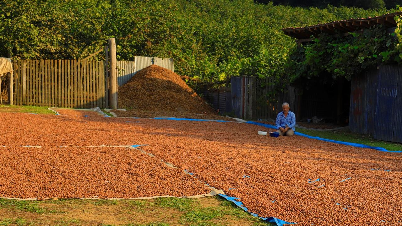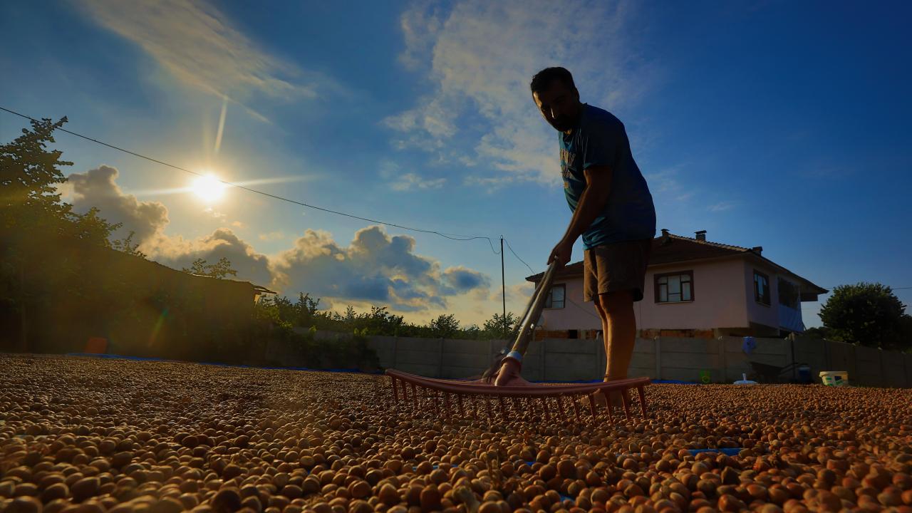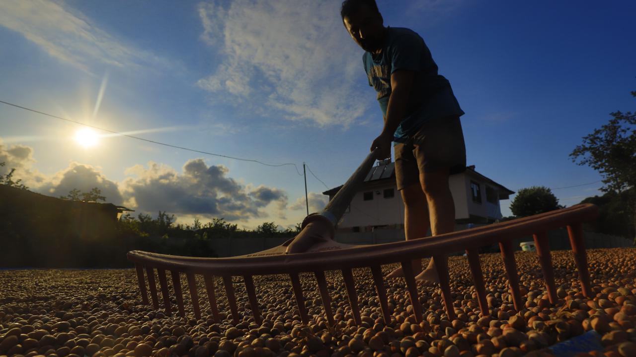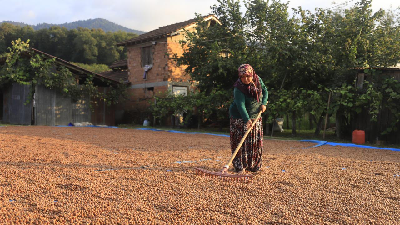 Üreticiler, fındığı kabuğundan ayırarak kurutma işlemi için güneş görebileceği yerlere seriyor.