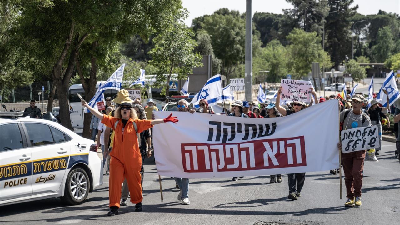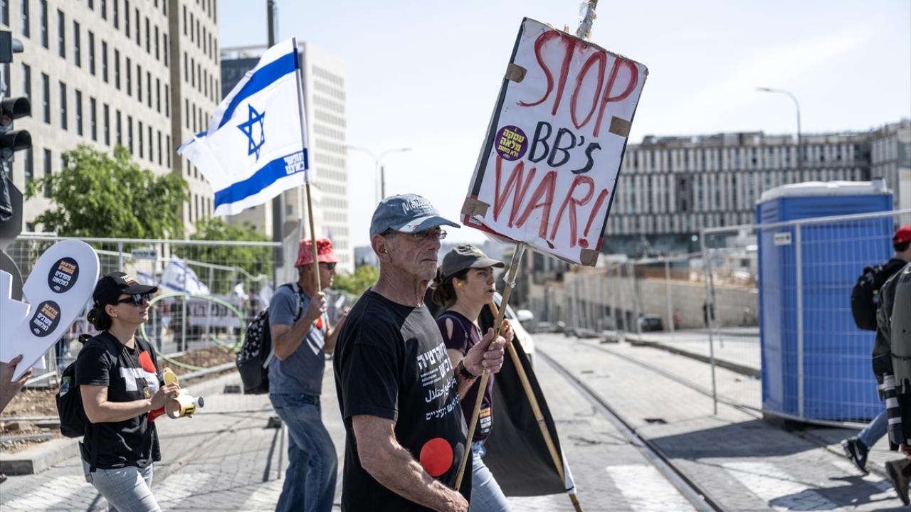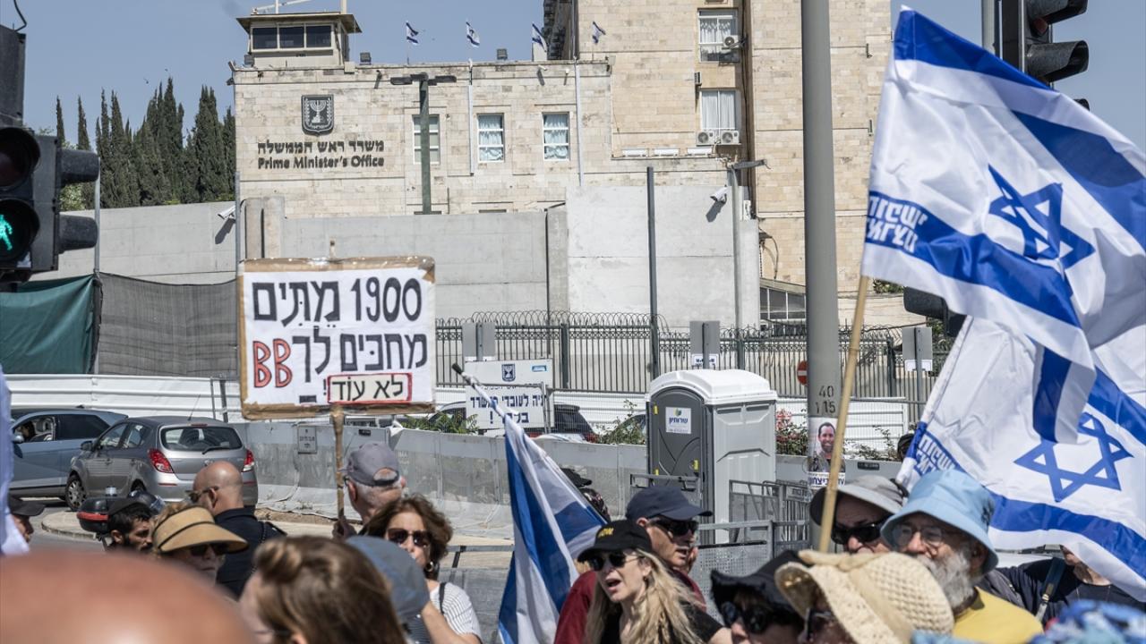 Batı Kudüs'teki İsrail Başbakanlığı Ofisi önünde toplanan İsrailliler, Başbakan Binyamin Netanyahu ve İsrail hükümetini protesto ederek İsrail'in Gazze'ye yönelik saldırılarını durdurulmasını talep etti.