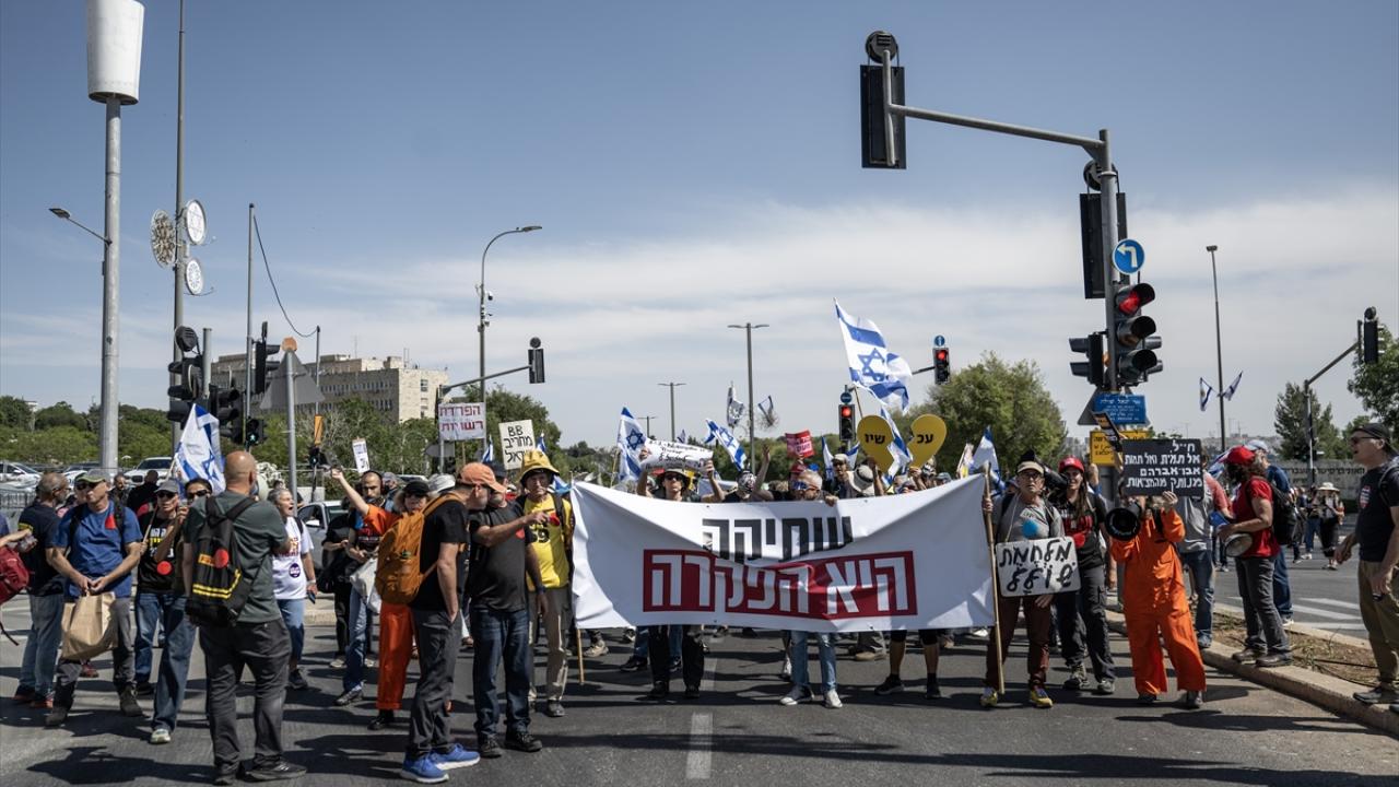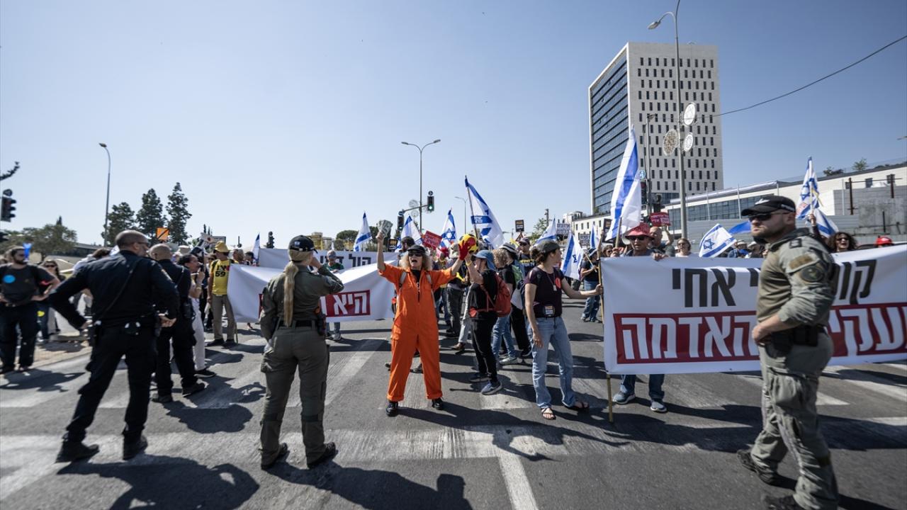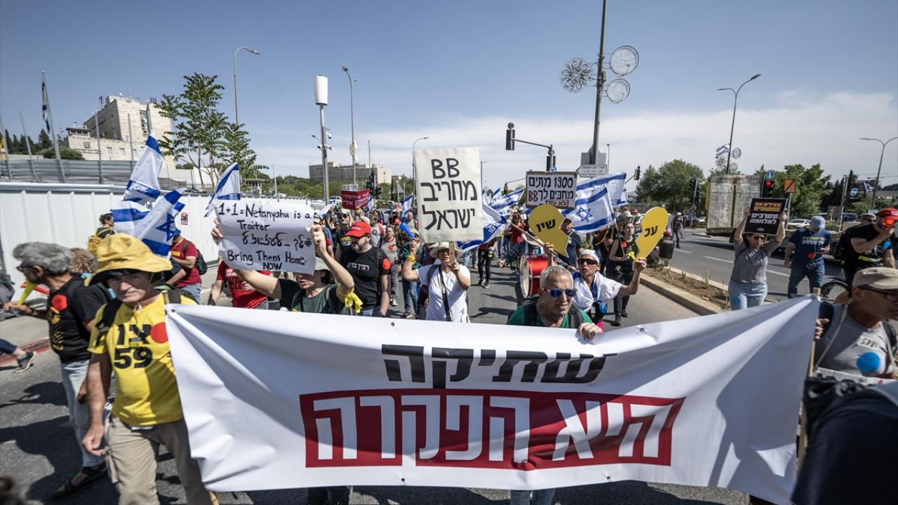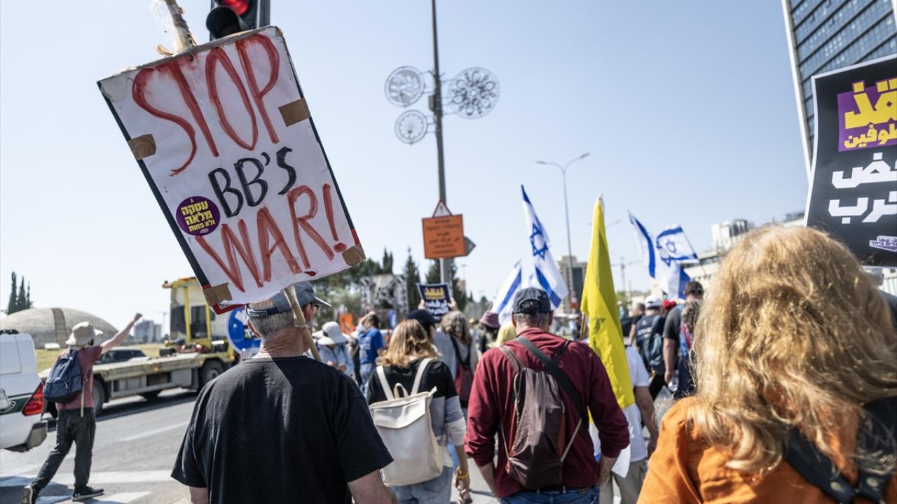 Batı Kudüs'teki İsrail Başbakanlığı Ofisi önünde toplanan İsrailliler, Başbakan Binyamin Netanyahu ve İsrail hükümetini protesto ederek İsrail'in Gazze'ye yönelik saldırılarını durdurulmasını talep etti.