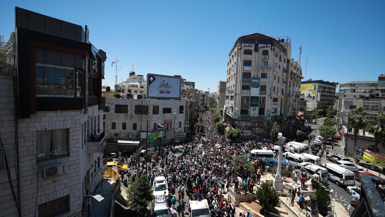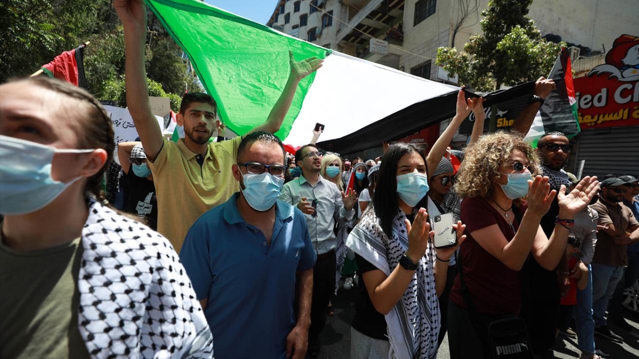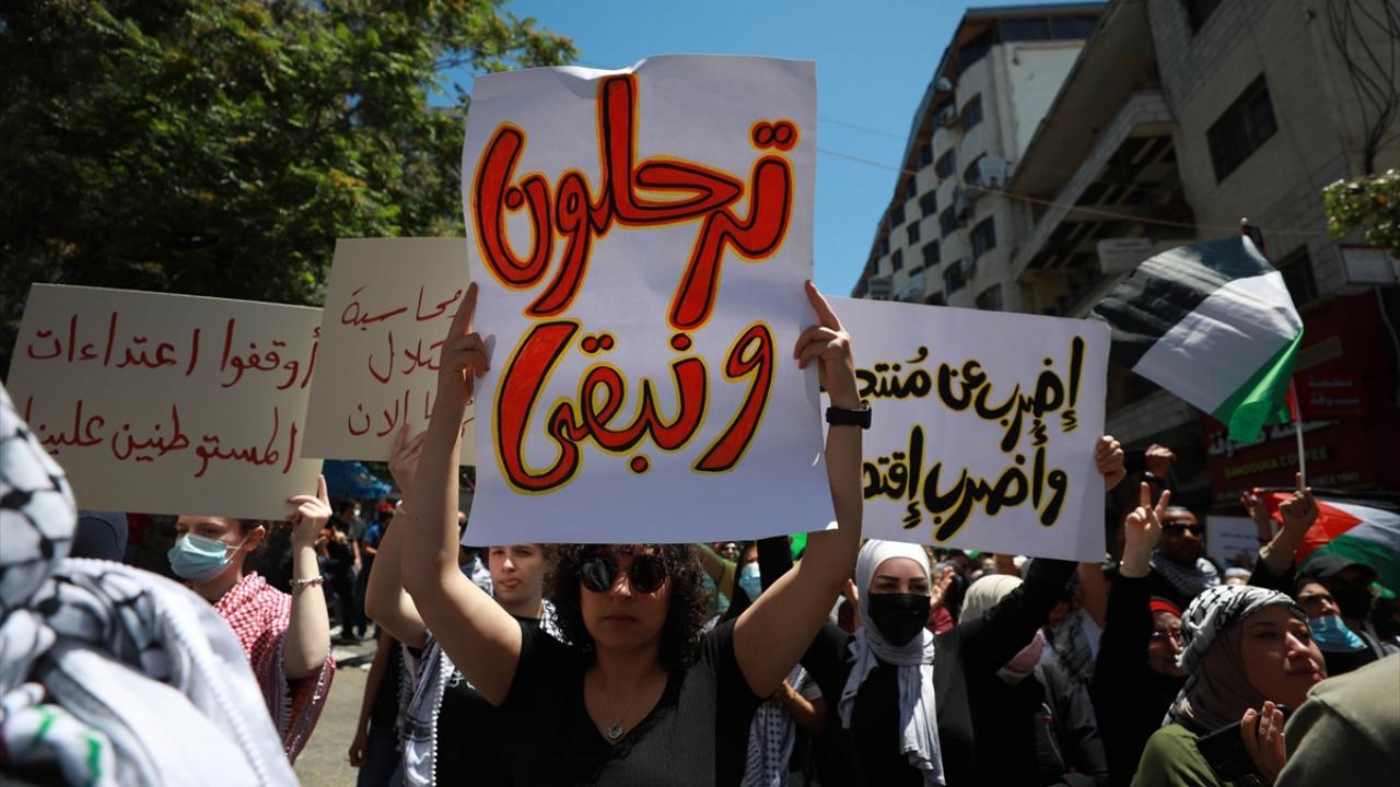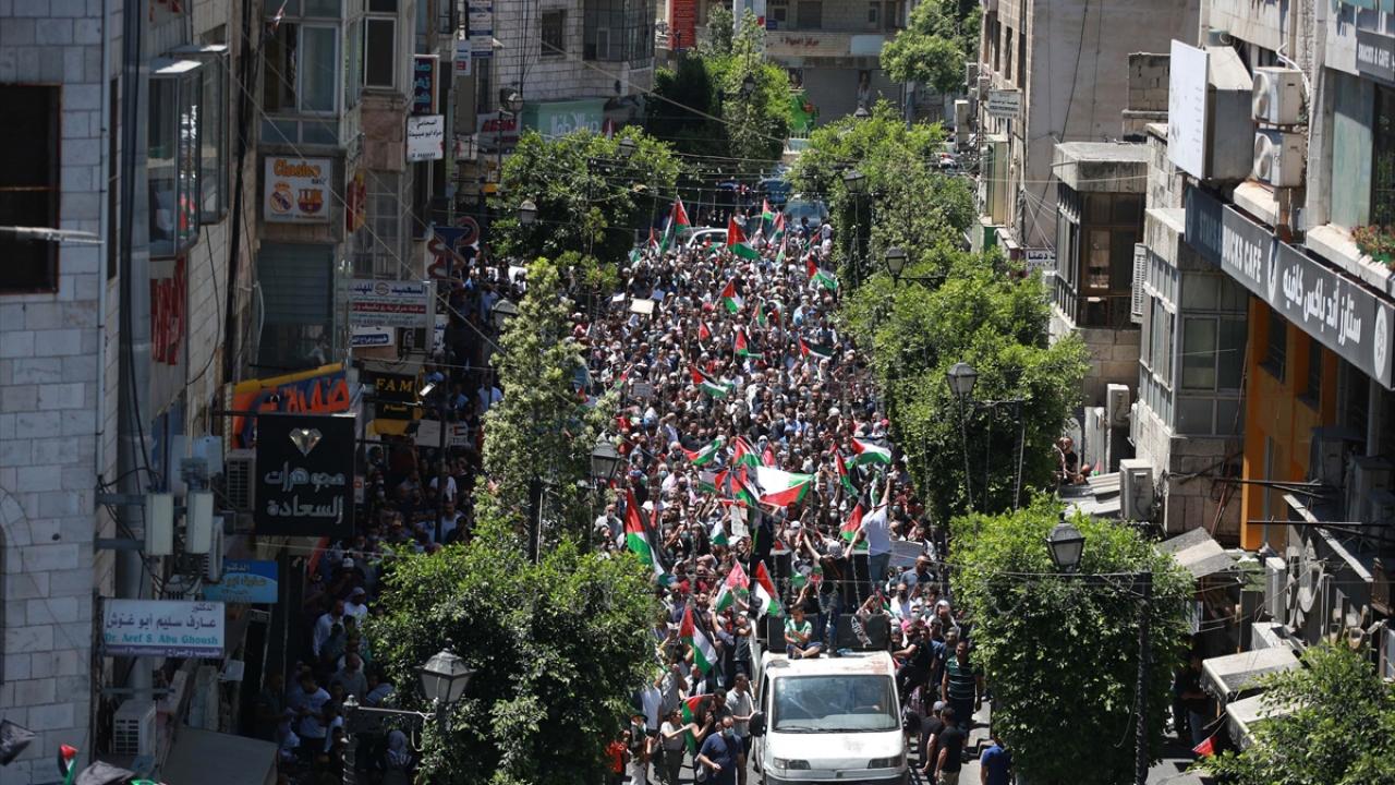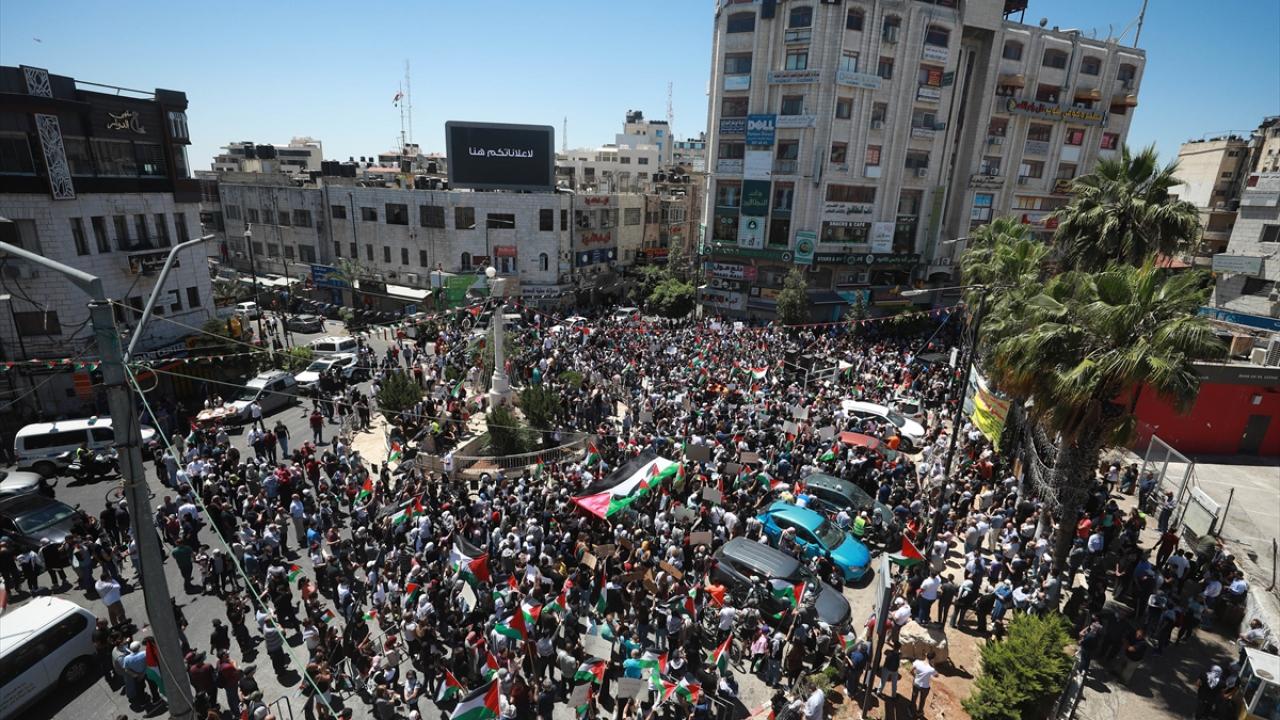 İşgal altındaki Batı Şeria'nın Ramallah kentinde toplanan Filistinliler, İsrail'in Gazze Şeridi'ne düzenlediği saldırıları ve Doğu Kudüs'teki ihlallerini protesto etti.