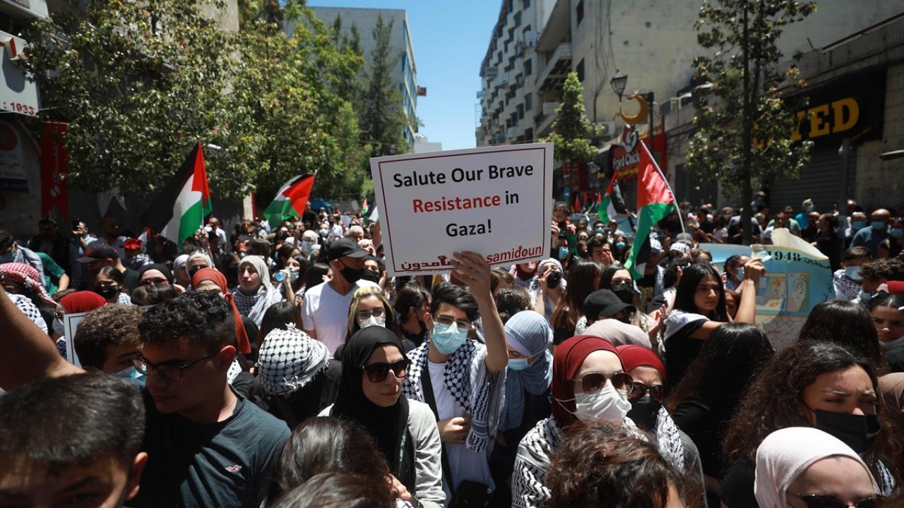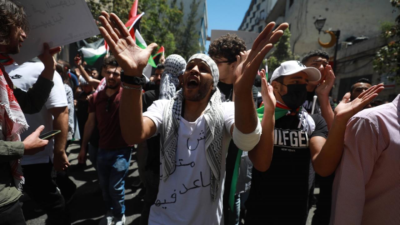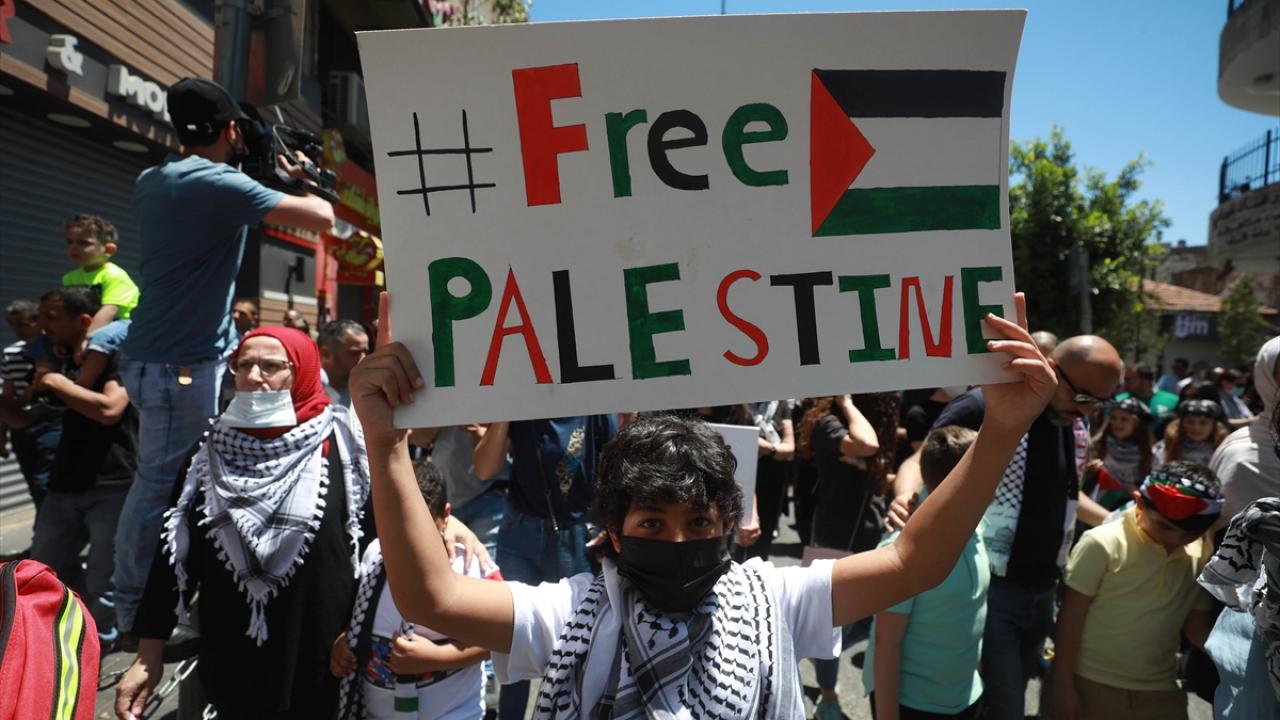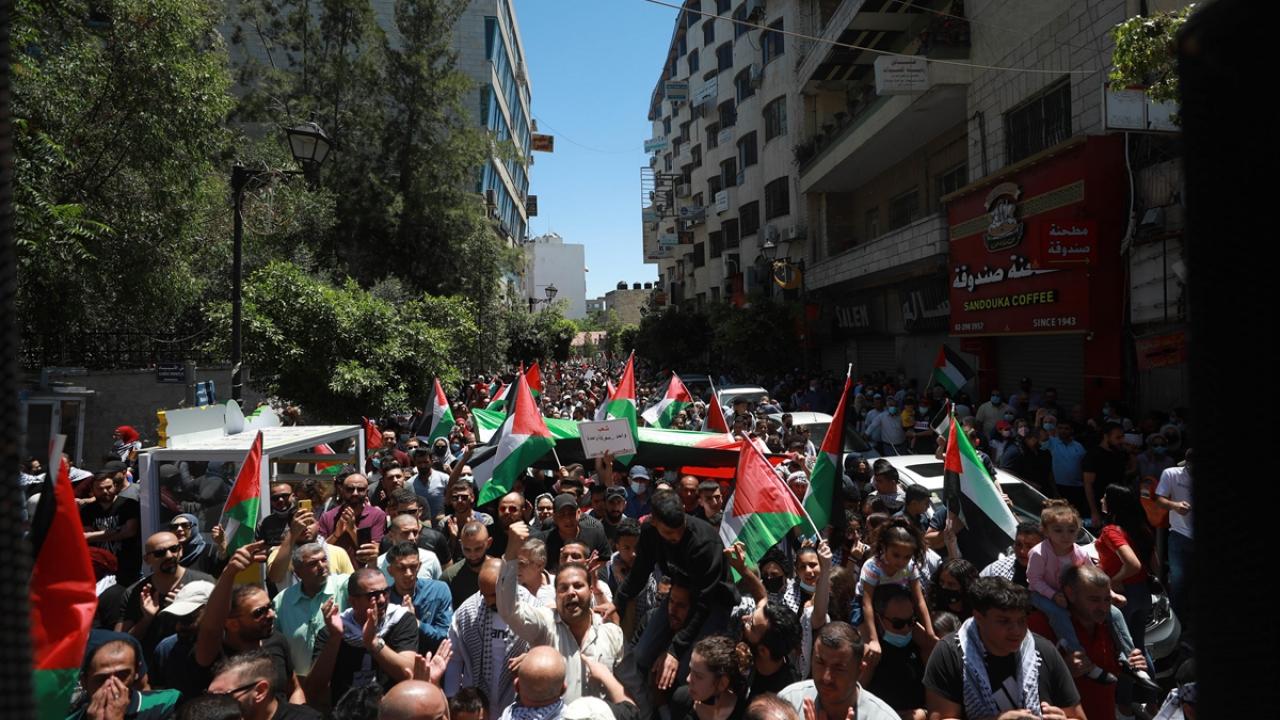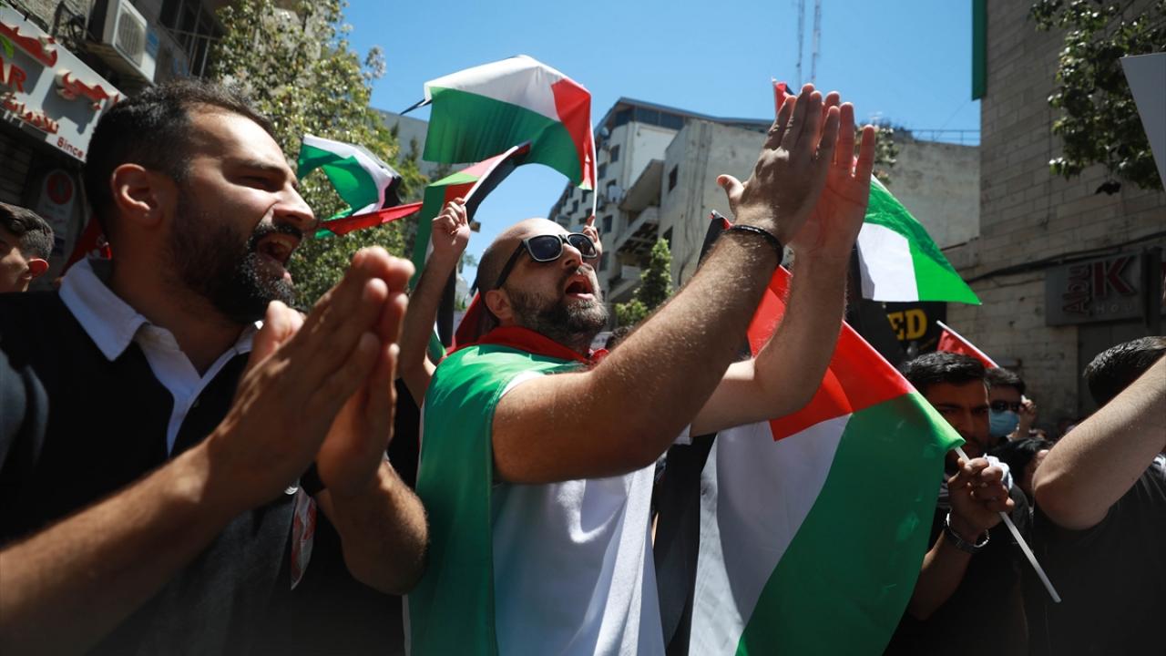 İşgal altındaki Batı Şeria'nın Ramallah kentinde toplanan Filistinliler, İsrail'in Gazze Şeridi'ne düzenlediği saldırıları ve Doğu Kudüs'teki ihlallerini protesto etti.