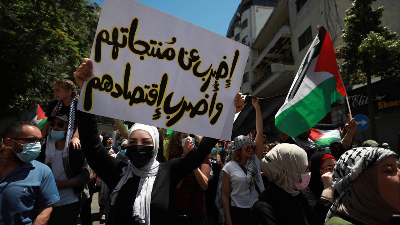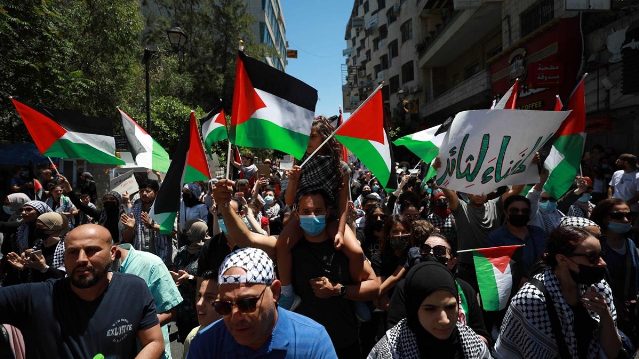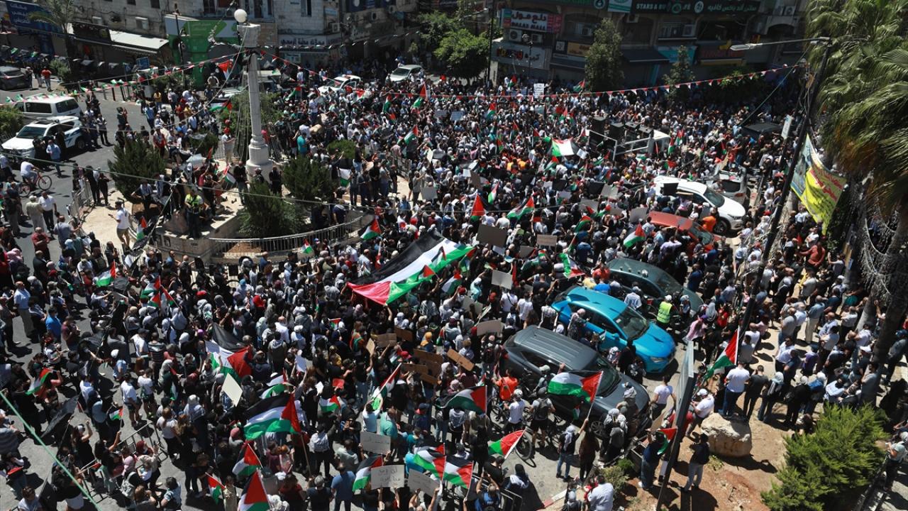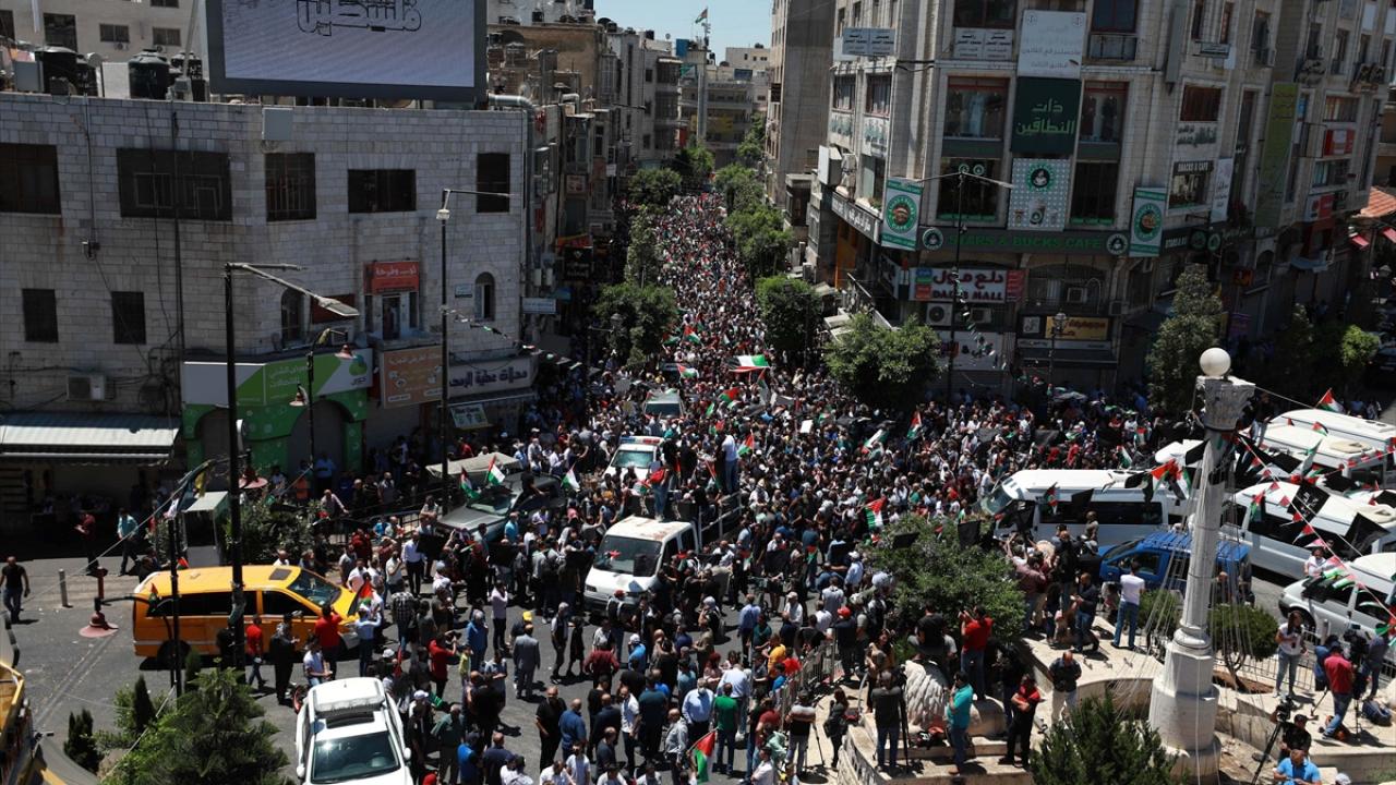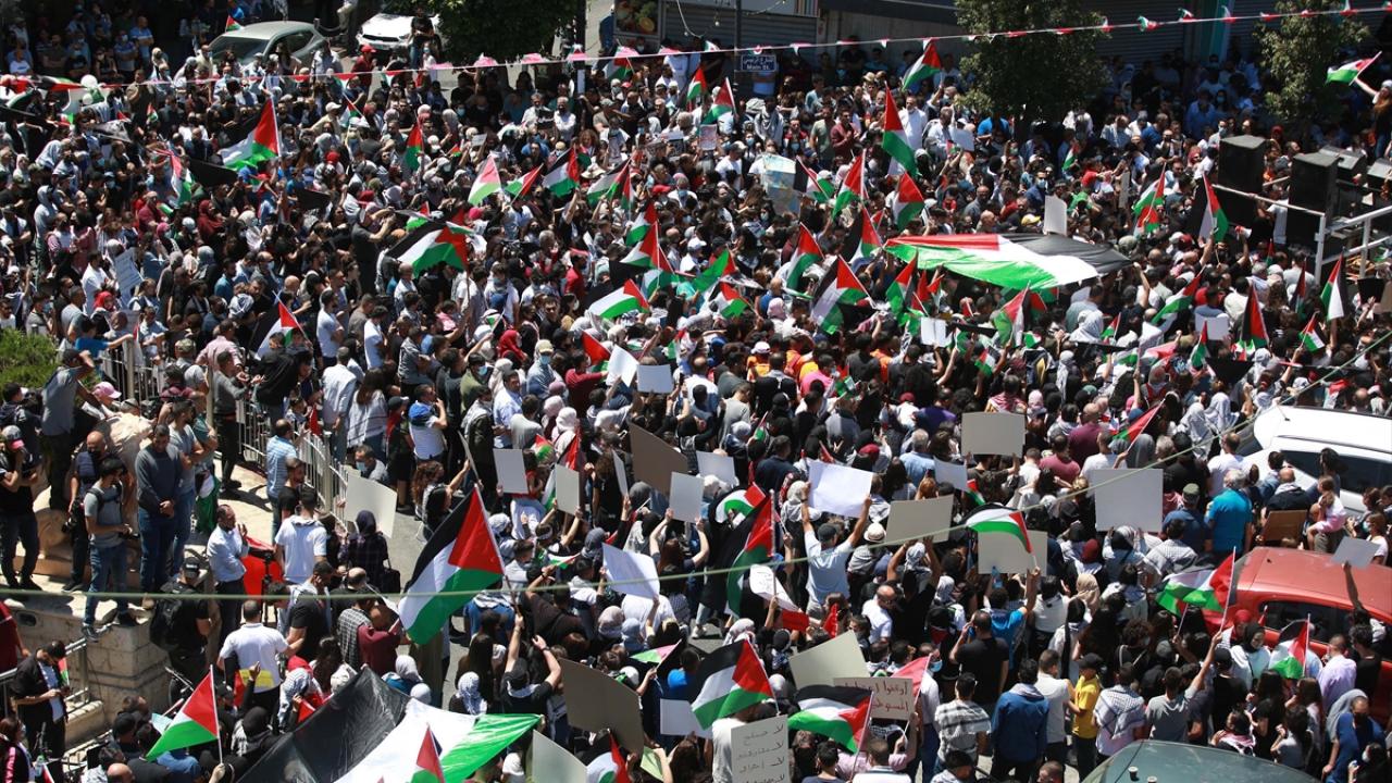 İşgal altındaki Batı Şeria'nın Ramallah kentinde toplanan Filistinliler, İsrail'in Gazze Şeridi'ne düzenlediği saldırıları ve Doğu Kudüs'teki ihlallerini protesto etti.
