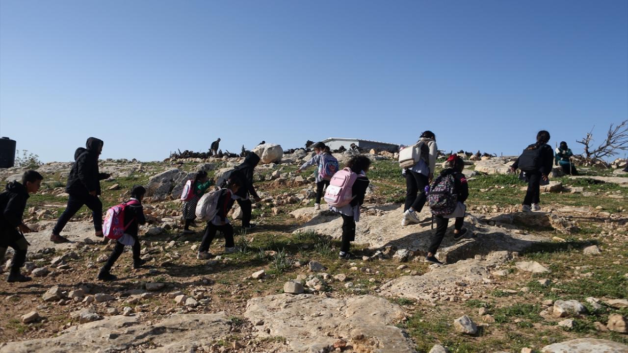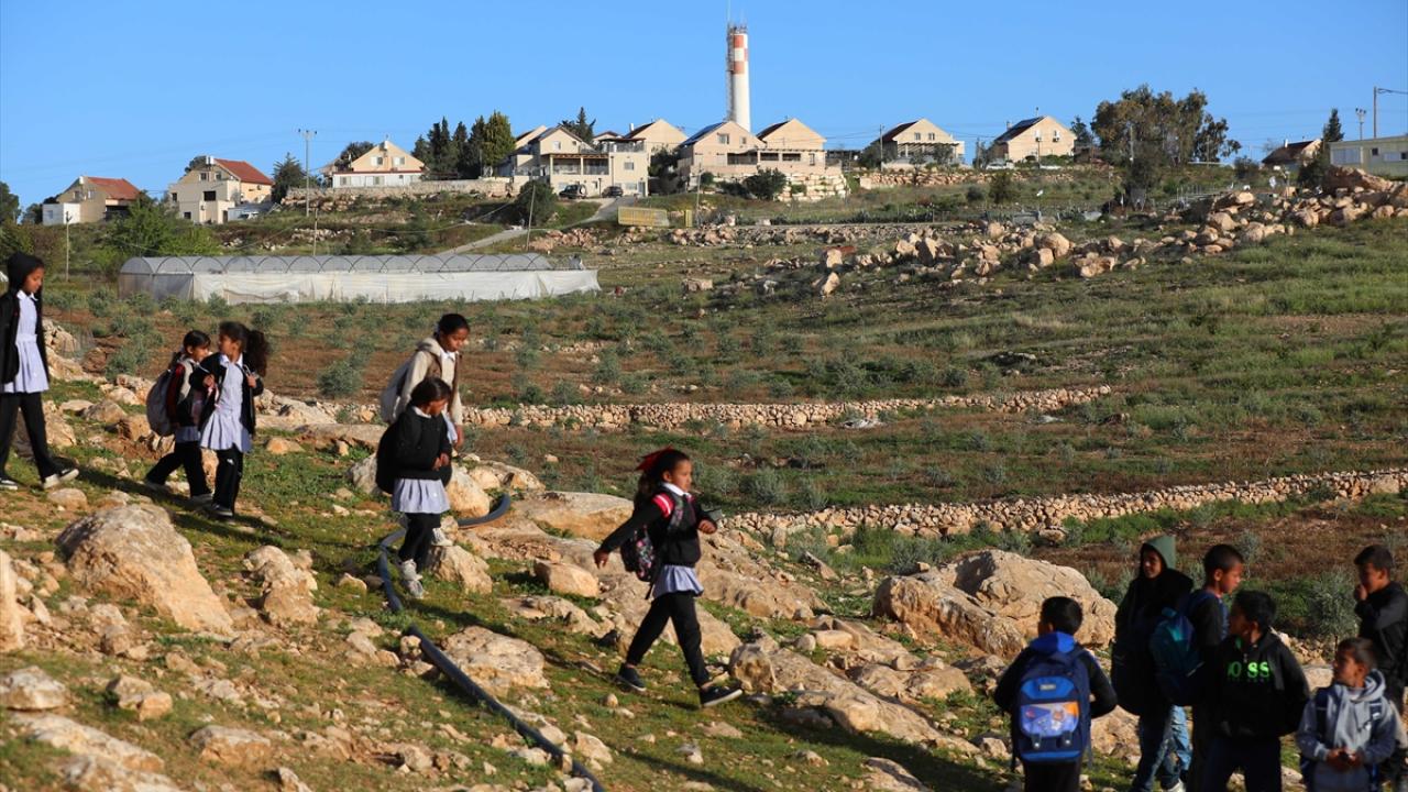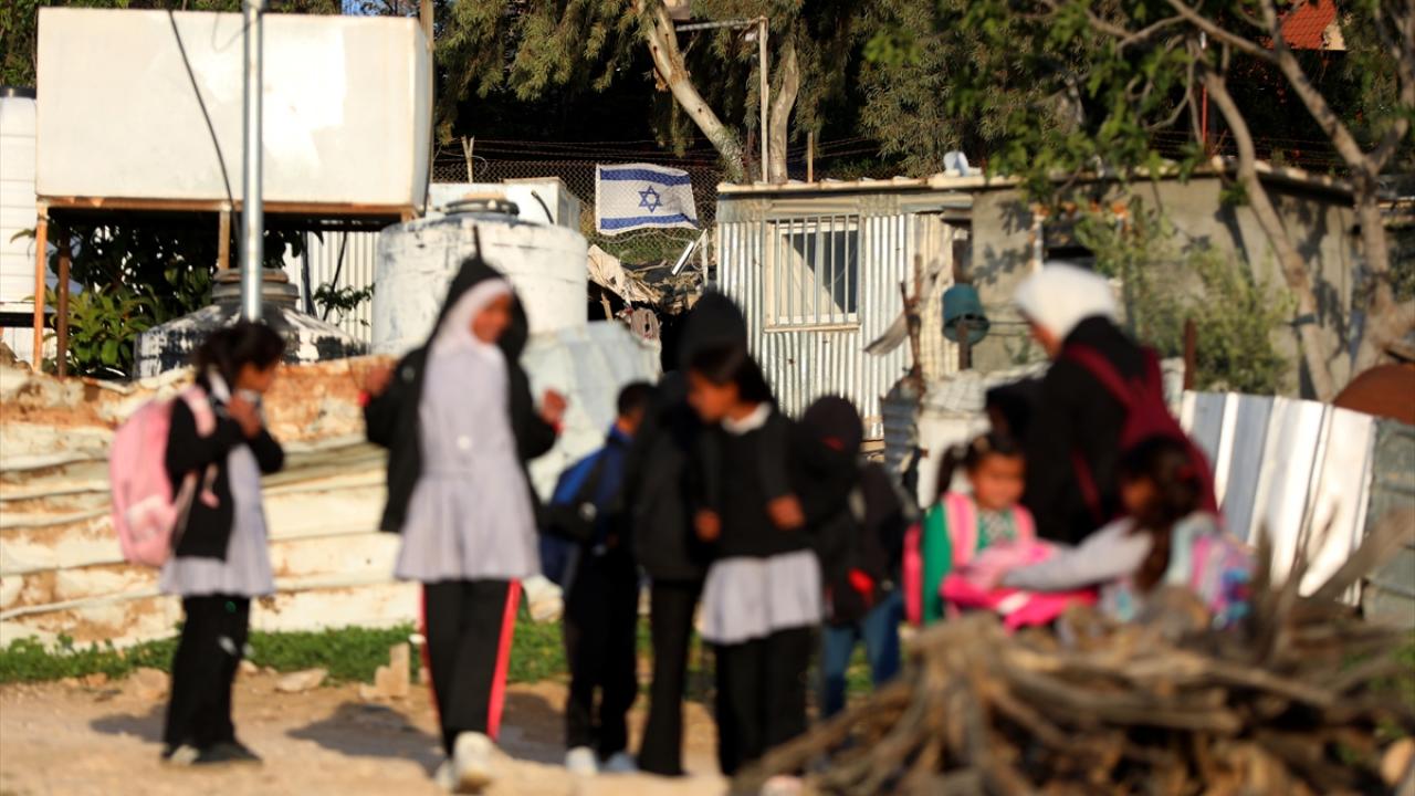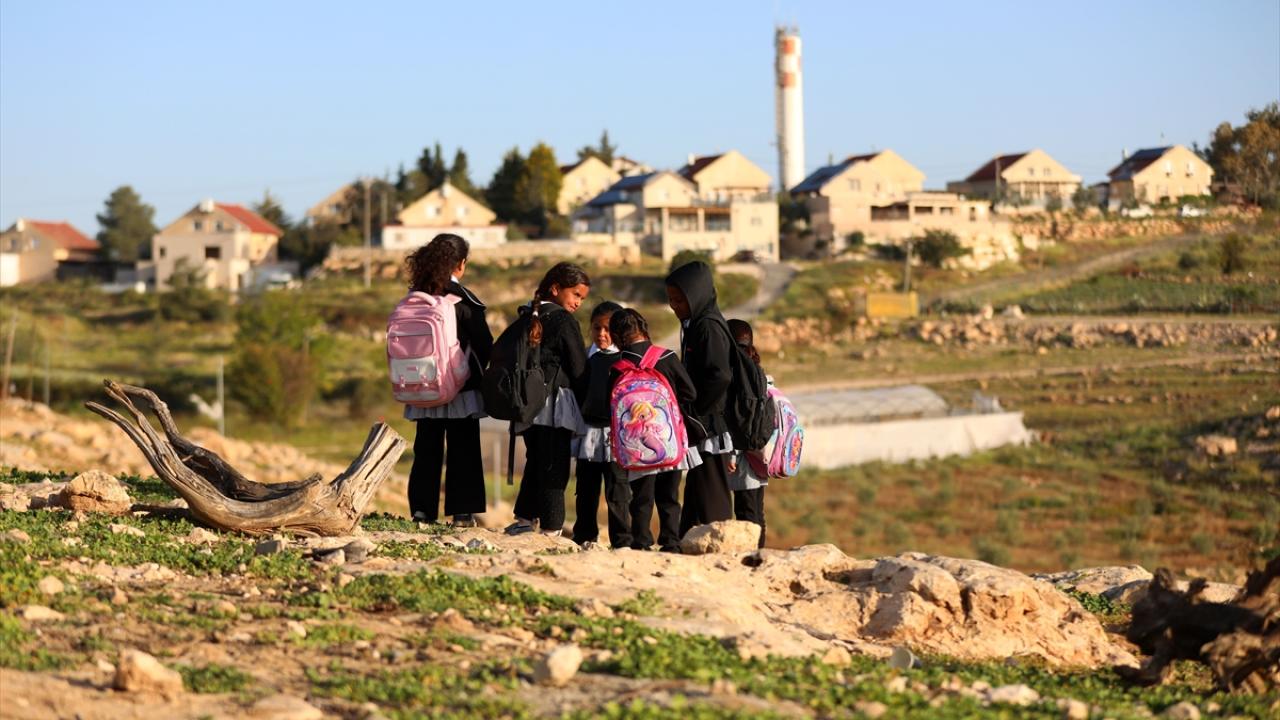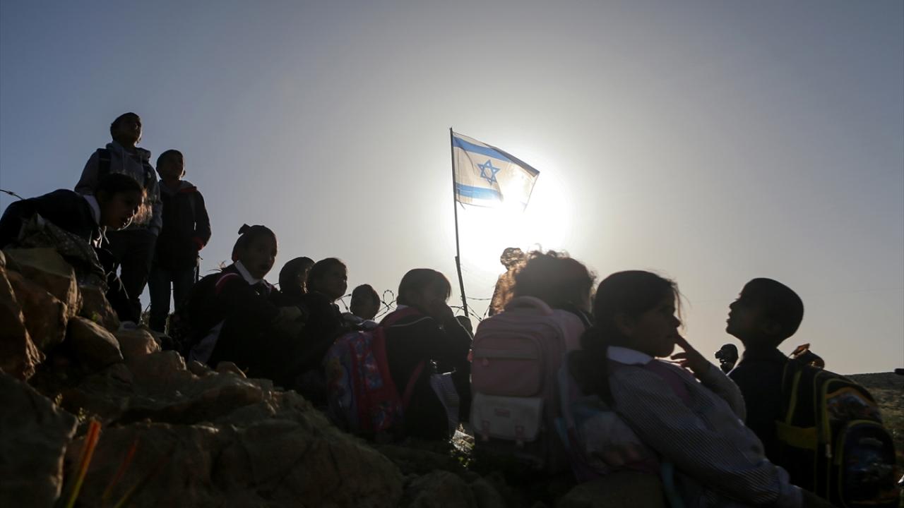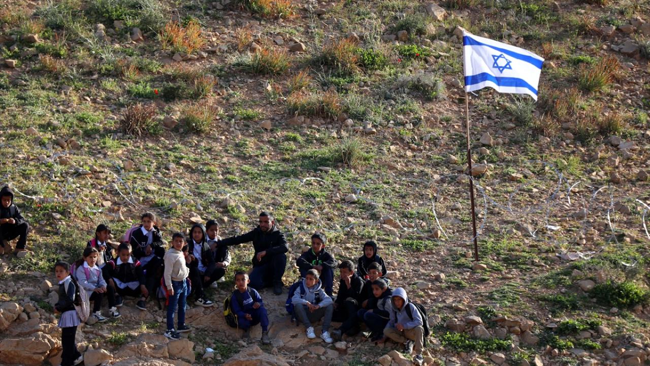 Öğrencilerin okula ulaşmak için kullandığı yolun kapatılmasının 2. gününde Filistinliler, uzun süren aranın ardından döndükleri derslerine sokakta devam ediyor.