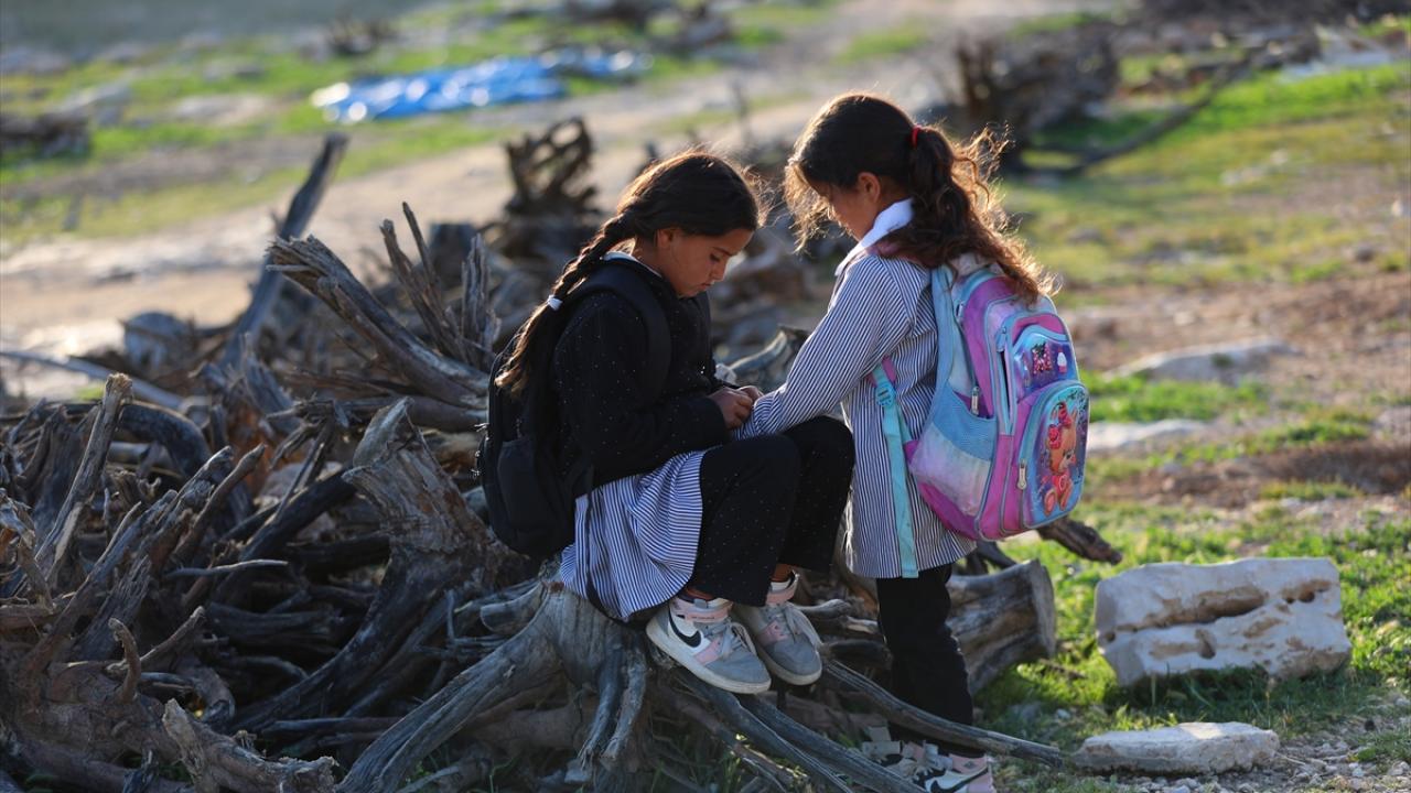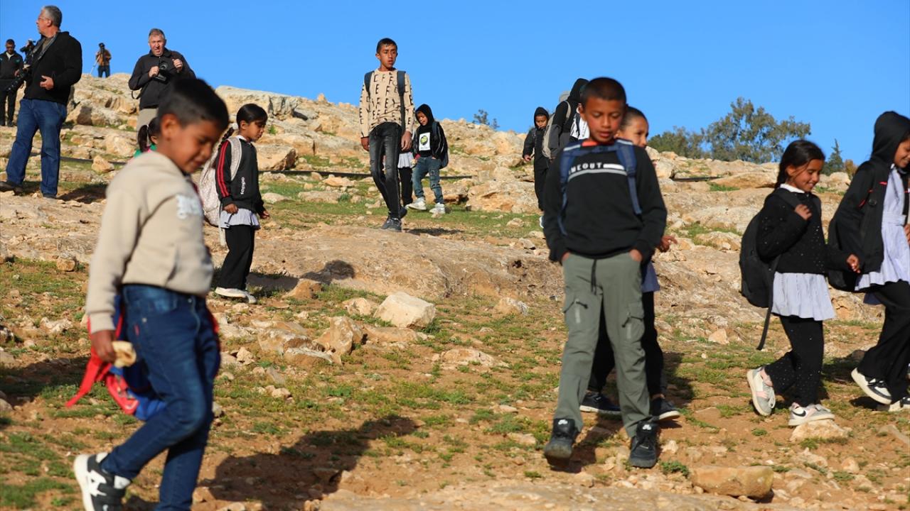 Batı Şeria'da öğrenciler, İsraillilerin kapattığı yol nedeniyle derslerine sokakta devam ediyor
