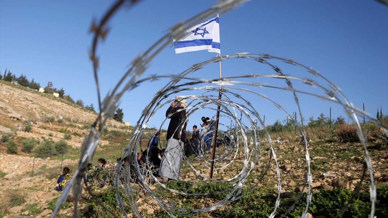 Filistin topraklarını gasbeden İsrailliler, işgal altındaki Batı Şeria’nın güneyindeki El-Halil kentinin Mesafir Yatta bölgesindeki Ummul Hayr köyünde bir yolu kapattı.