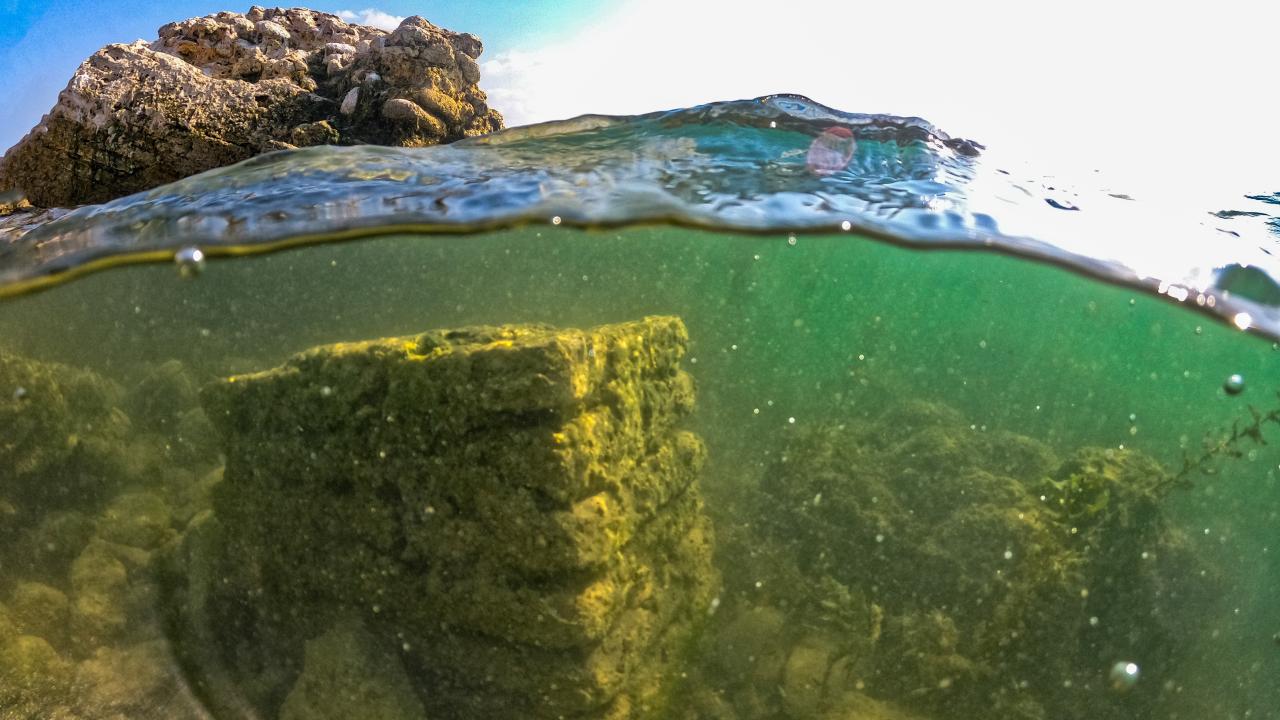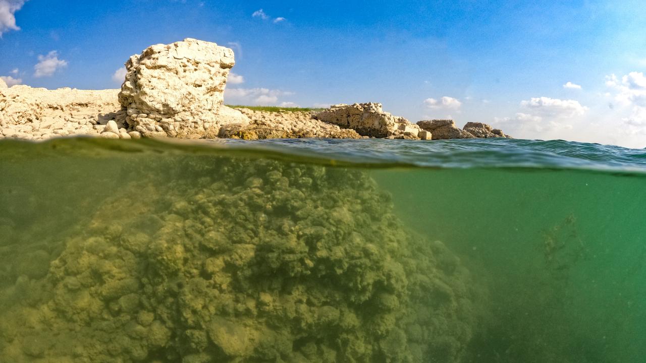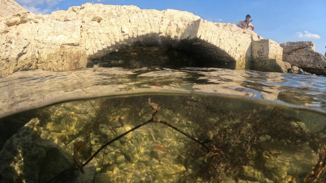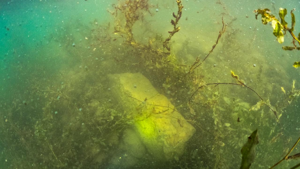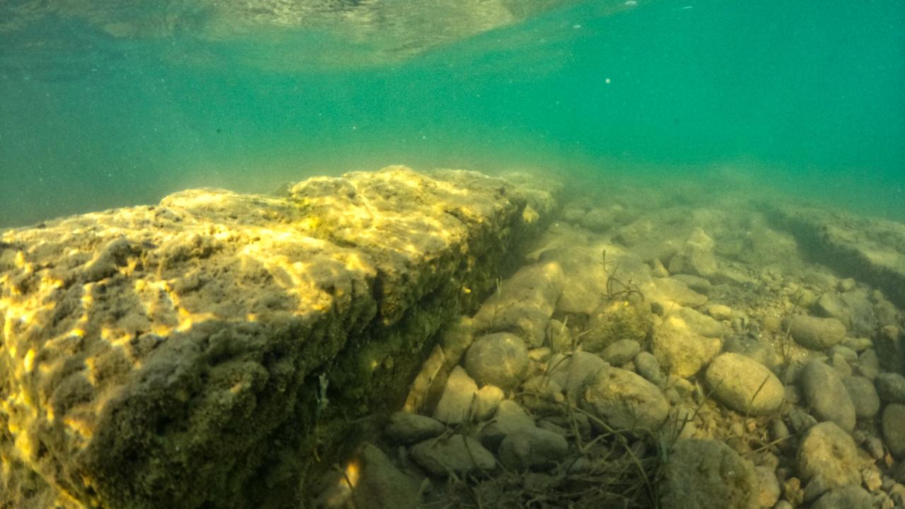 Baraj inşaatı esnasında keşfedilen, suyun yaklaşık 3 metre altındaki Roma dönemi antik kentteki bina kalıntıları, sütunlar su altı kamerasına yansıdı.