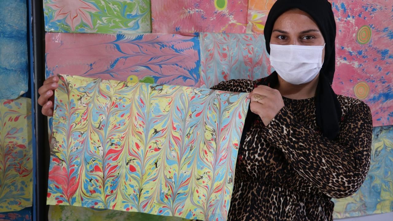 "Köy kadınlarına ebrunun nasıl yapıldığını ve inceliklerinin neler olduğunu öğretmeye çalışıyorum. Kursun sonunda kadınlarla sergi de açmayı düşünüyoruz." diye Yelken, kadınların verilen eğitimle güzel eserler çıkarmaya başladığını dile getirdi.