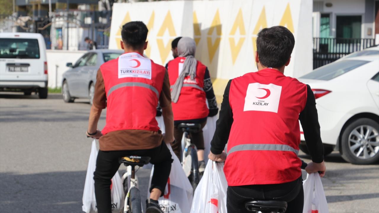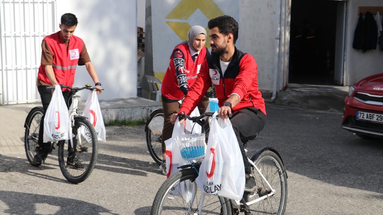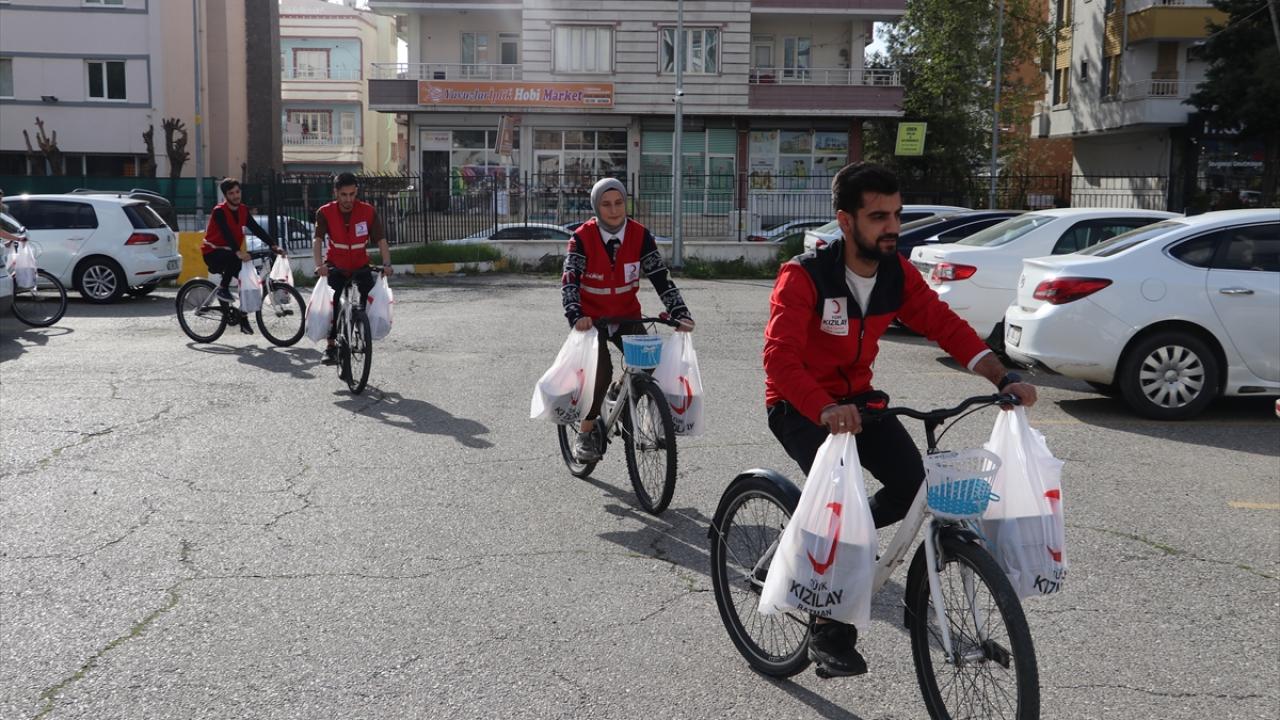 Kızılay mutfağında hazırlanan yemekler gönüllüler tarafından çoğunlukla bisiklet ve diğer araçlarla vatandaşların adreslerine ulaştırılıyor.