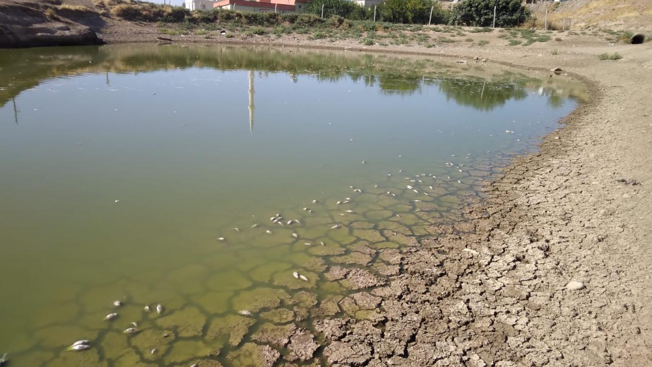 Batman'da suyu çekilen gölette yüzlerce balık öldü