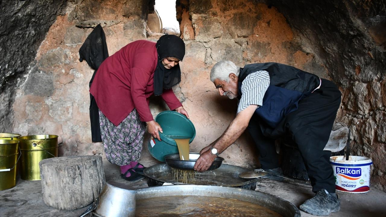Pekmez mesaisinin bağdan üzüm toplayarak başladığını anlatan Demir, "Pekmezi şifa amaçlı da kullanıyoruz. Ailemize yetecek kadarını kendimiz için saklıyoruz. Fazlasını da satarak aile ekonomimize katkı sağlıyoruz." diye konuştu.