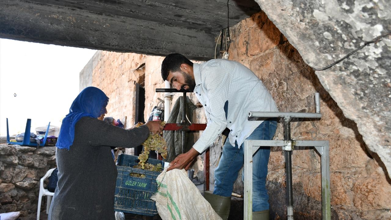 Bölgede yoğun olarak tüketilen, besin değeri yüksek mezrone üzümünden pekmez yapmak için üreticiler, sabahın erken saatlerinden itibaren çalışmaya başlıyor.
