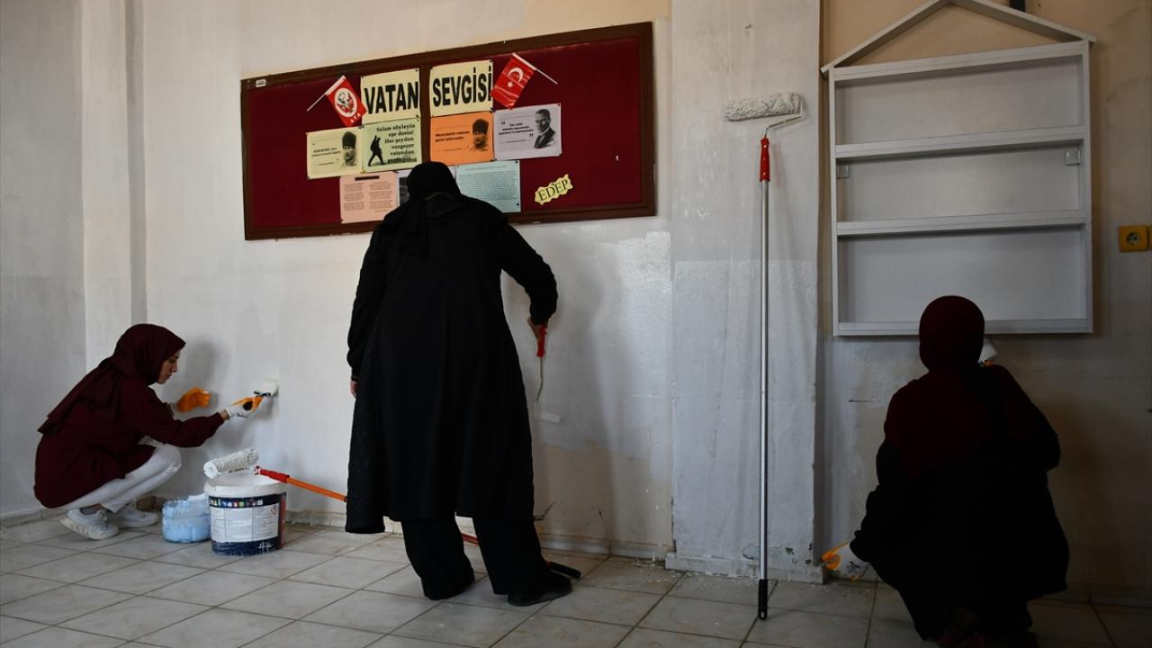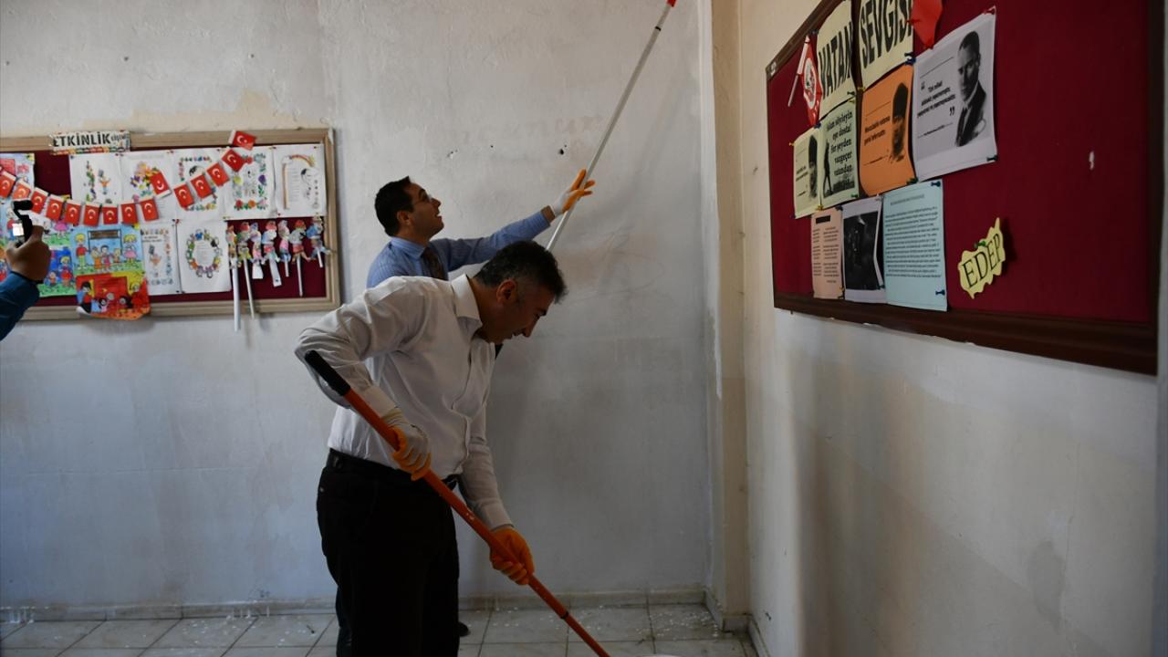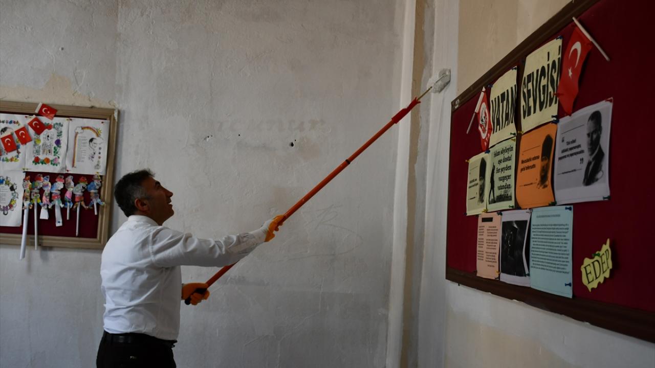 Batman'da üniversite öğrencileri köy okulunun sınıfını boyadı