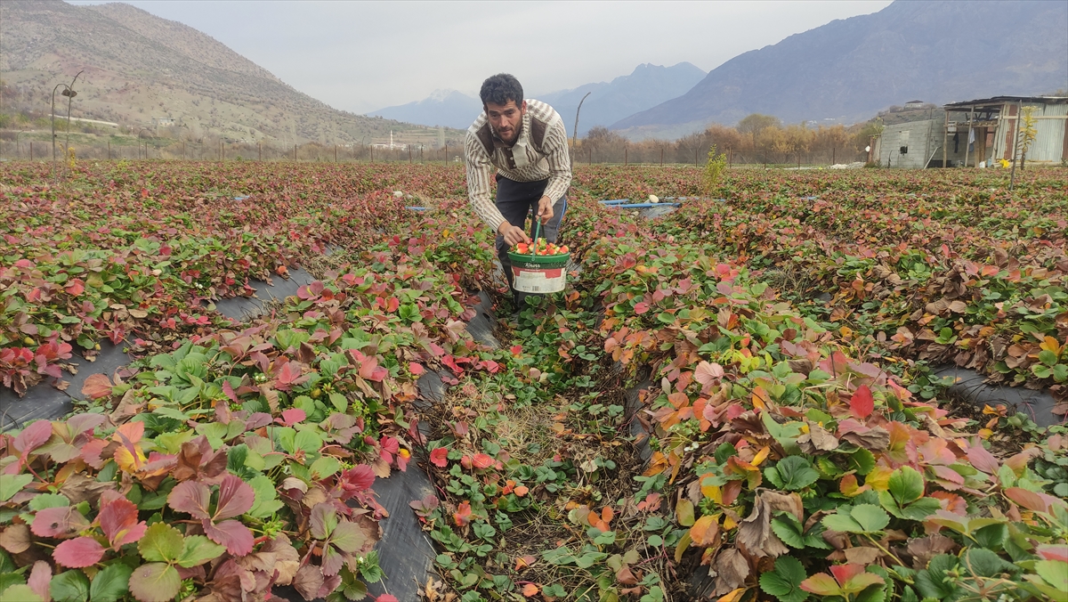 Bozkurt, "Sason Mereto Dağı`nda kar, bizim bahçelerde ise çilek var. Hasadımız sürüyor. Organik çileklerimizden kışın da tüketmeleri için herkesi ilçeye bekliyoruz." diye konuştu.