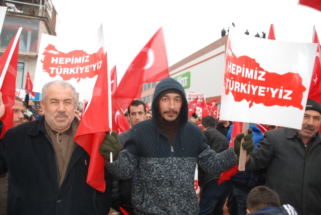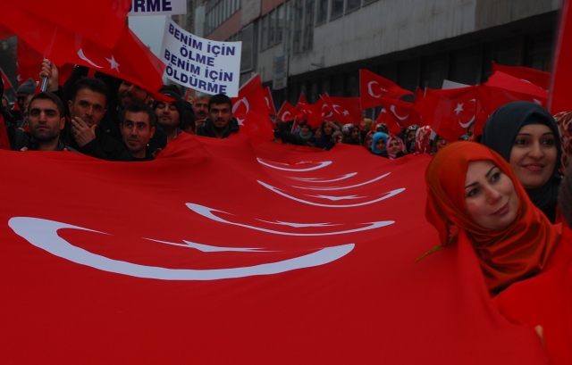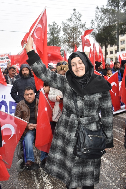 Batman'da düzenlenen "Teröre Lanet Kardeşliğe Davet" yürüyüşüne katılanlar ellerinde Türk bayraklarıyla terör örgütleri PKK ve DEAŞ ve hain saldırılarını protesto etti.