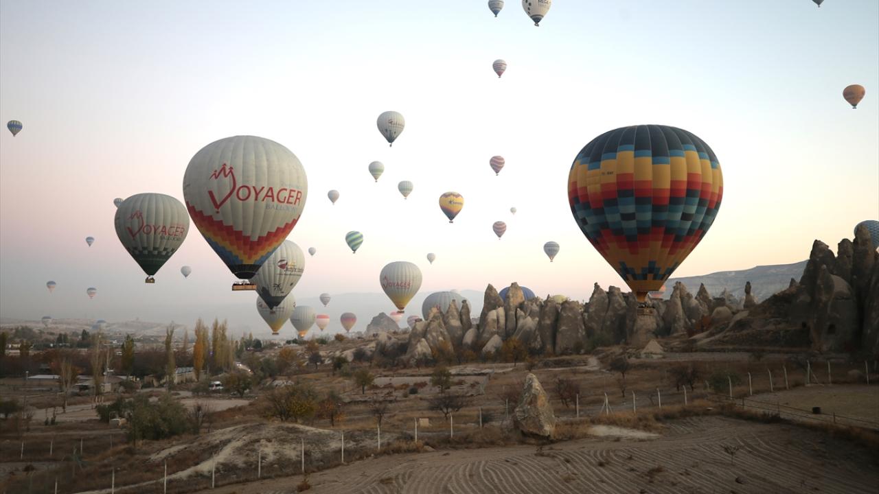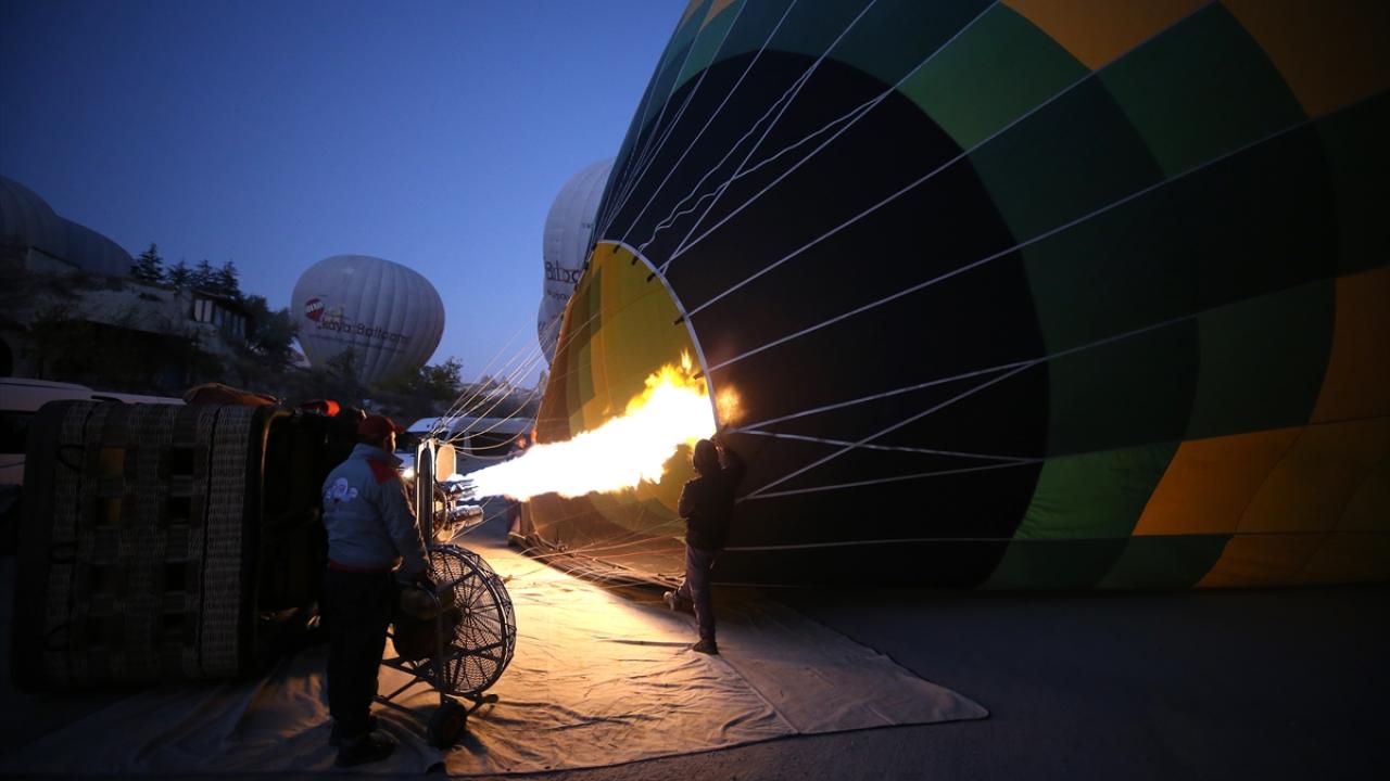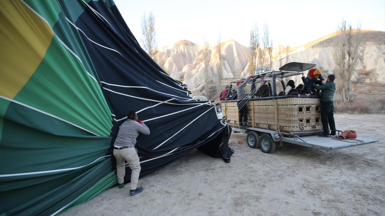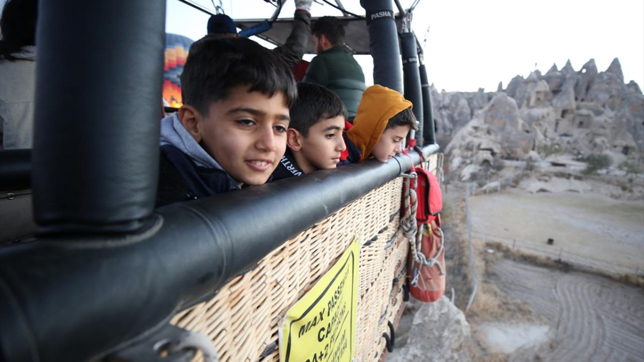 Nevşehir`e gelen 11 öğrenci ile 3 öğretmen, konakladıkları otelden alınarak Göreme beldesindeki sıcak hava balonları kalkış alanına getirildi. Hazırlanan sıcak hava balonuna binen öğretmen ve öğrenciler, yeni günü gökyüzünde karşıladı.