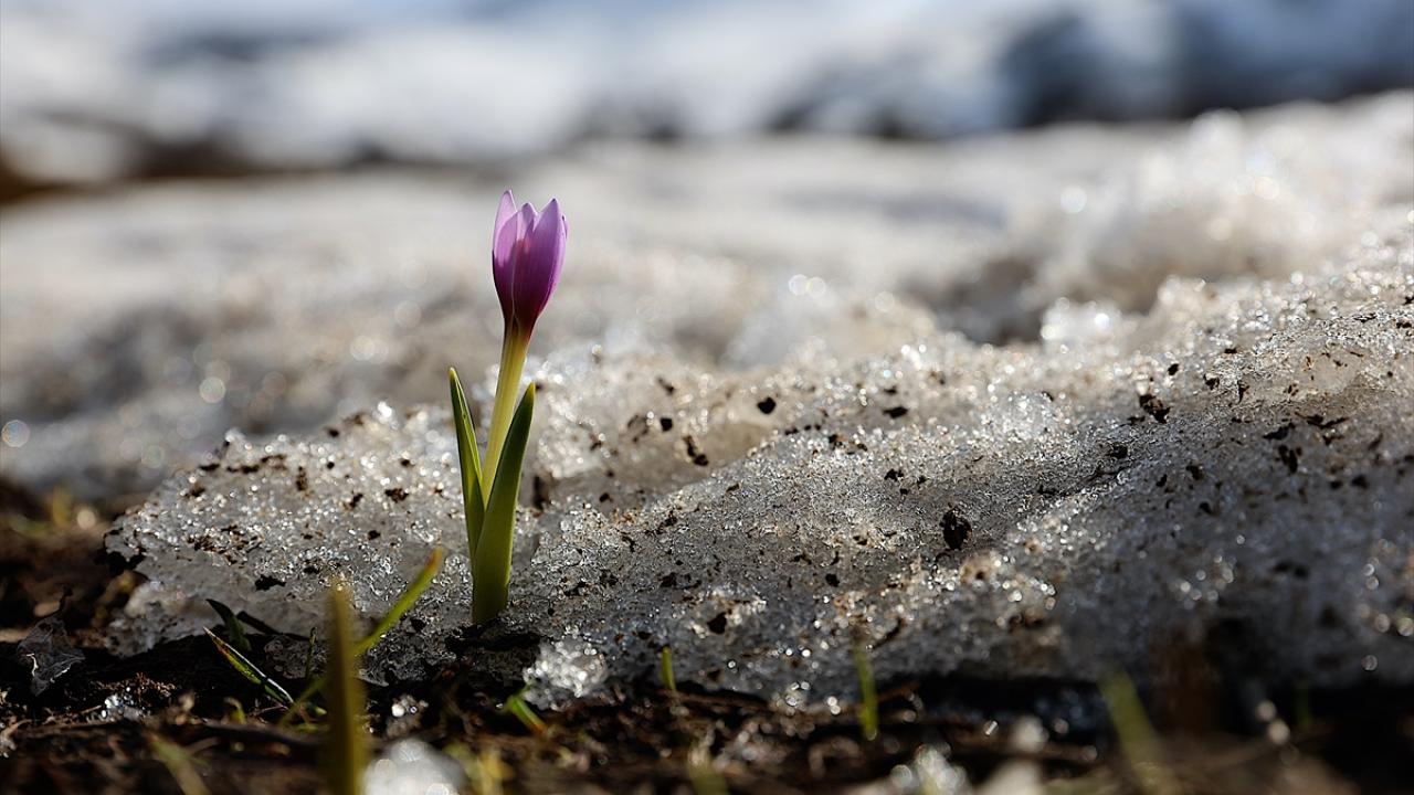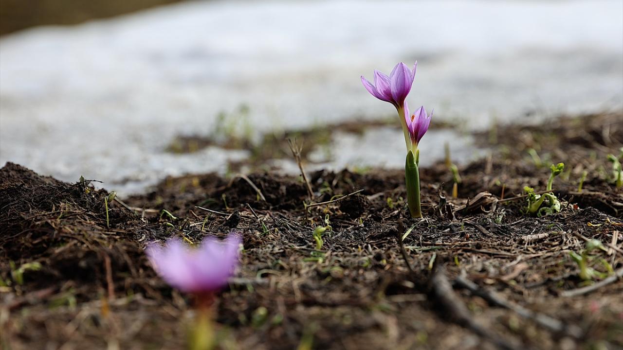 Çiğdemler, karların erimeye başladığı bölgede doğaya renk kattı.