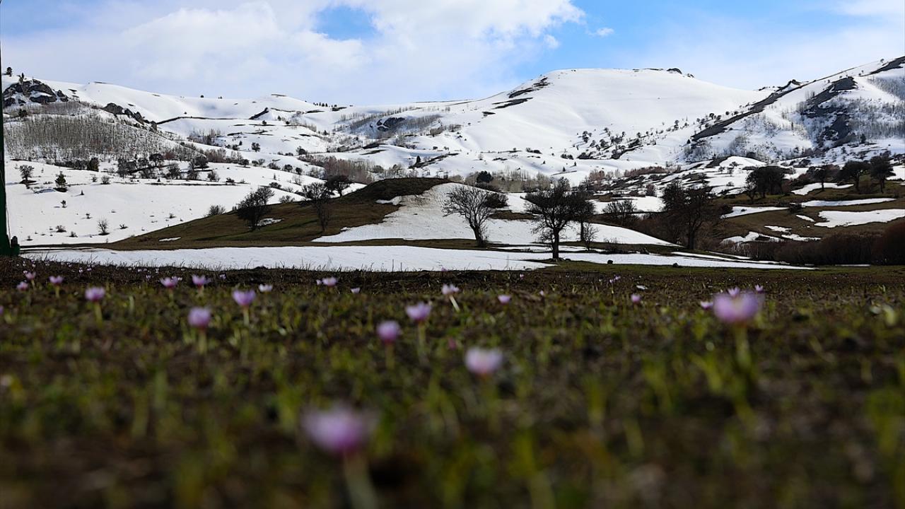 Çetin geçen kışın ardından havanın ısınmaya başlamasıyla yüksek kesimlerde beyaz, pembe ve mor çiğdemler açtı.
