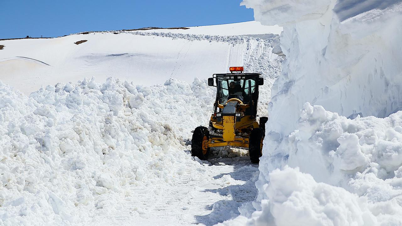 Zorlu doğa koşullarında 12 Nisan`dan beri çalışma yürüten ekipler, kar kalınlığının yer yer iş makinesinin boyunu aştığı noktalarda güçlükle ilerleyebiliyor.