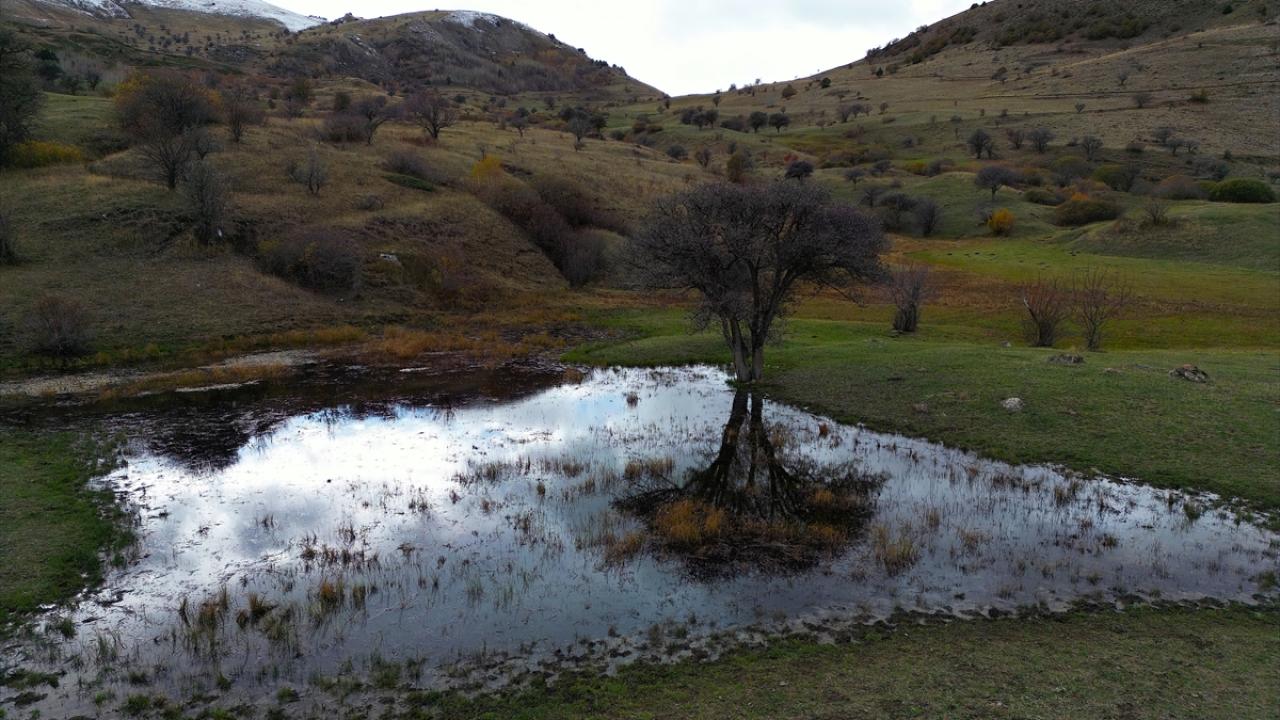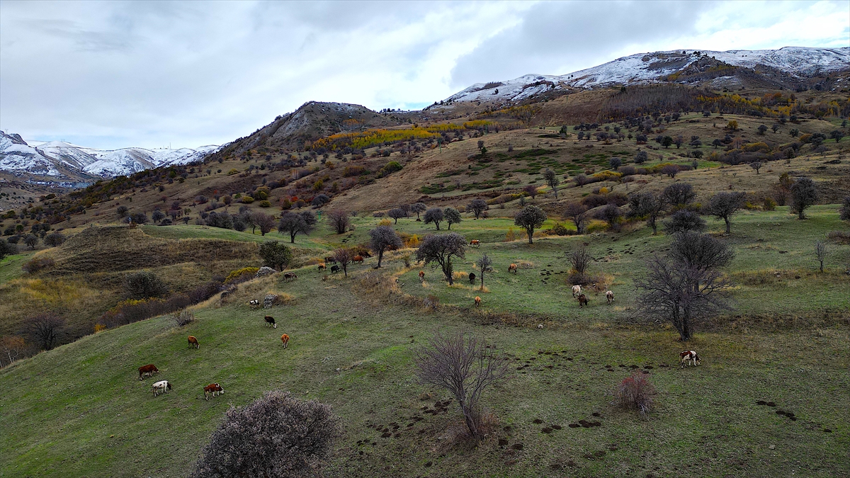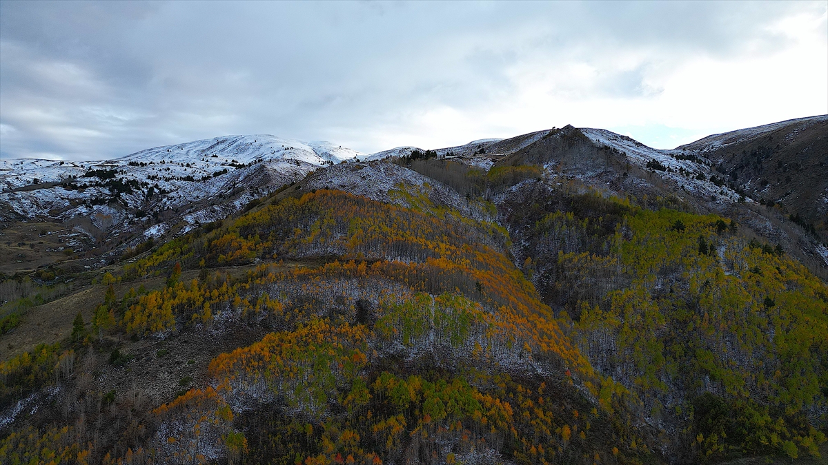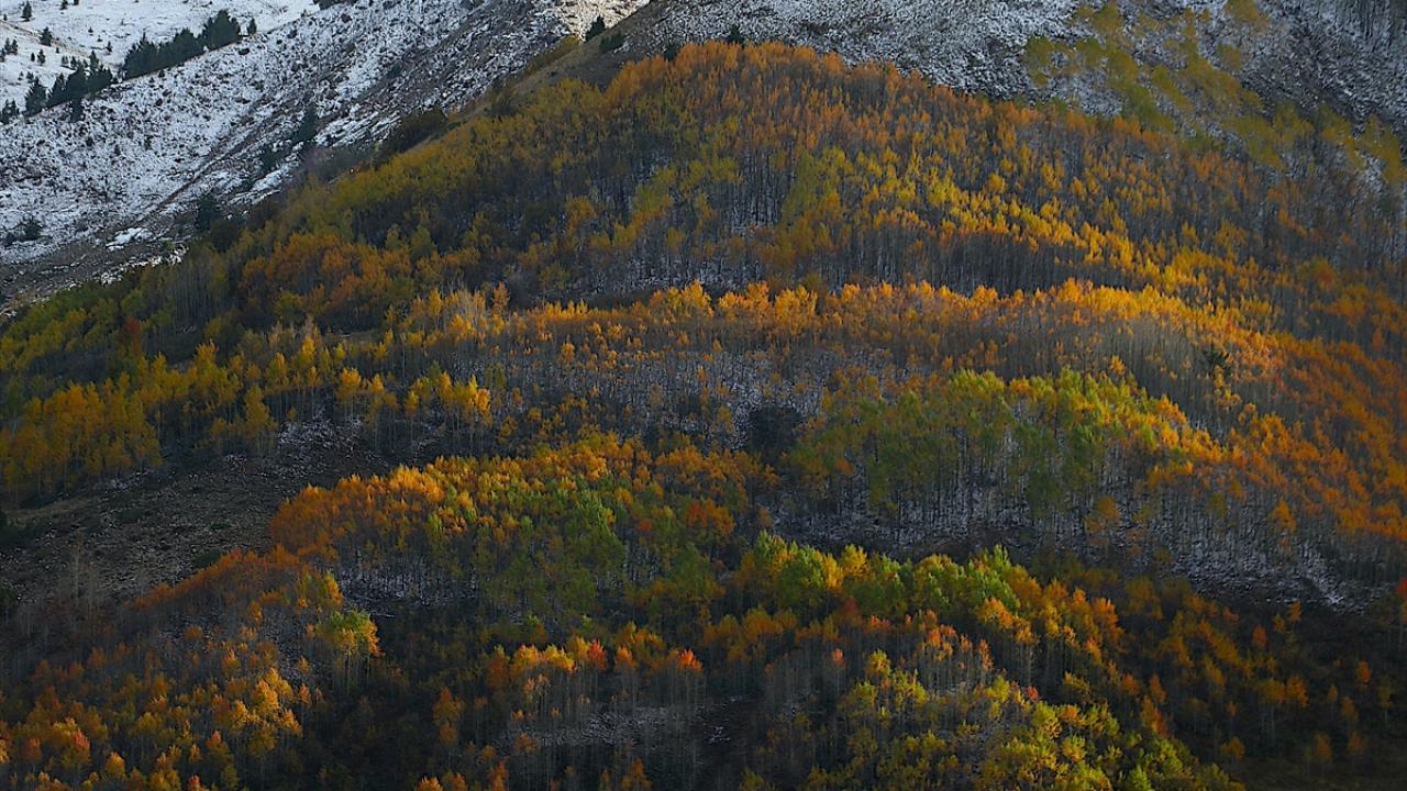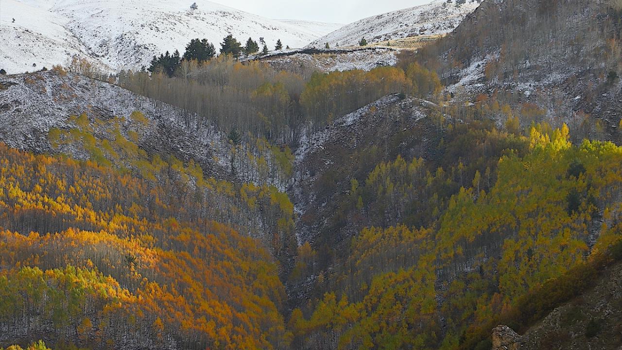 Sonbahar renklerinin hakim olduğu dağ köylerinde, yeşil, sarı ve kırmızının tonlarına bürünmüş ağaçlar ile karlı tepeler, güzel görüntü oluşturdu.