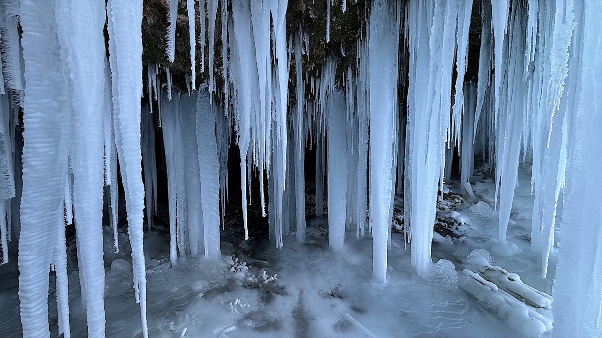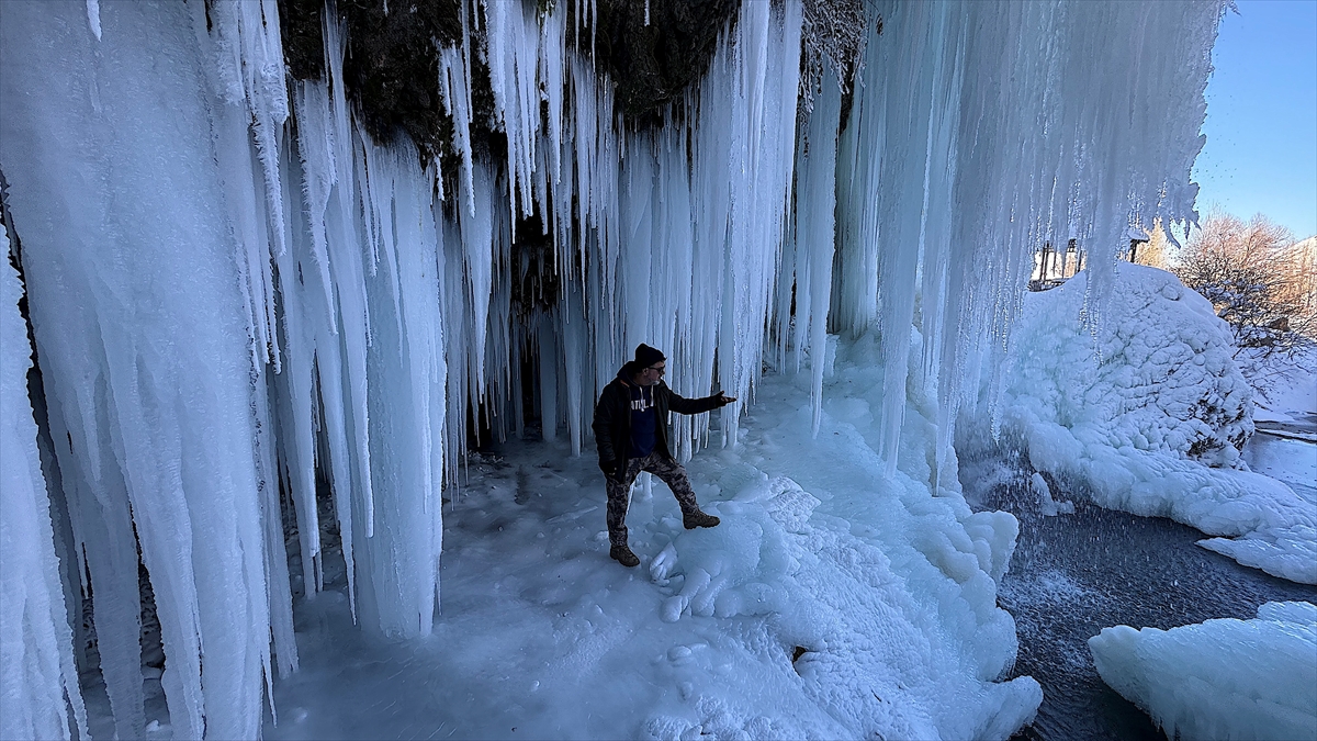 Soğuk havanın etkisiyle şelalenin bazı kısımlarının tamamen buzla kaplandığını belirten Faruk, devasa buz kütlelerinin görsel açıdan muhteşem olduğunu kaydetti.