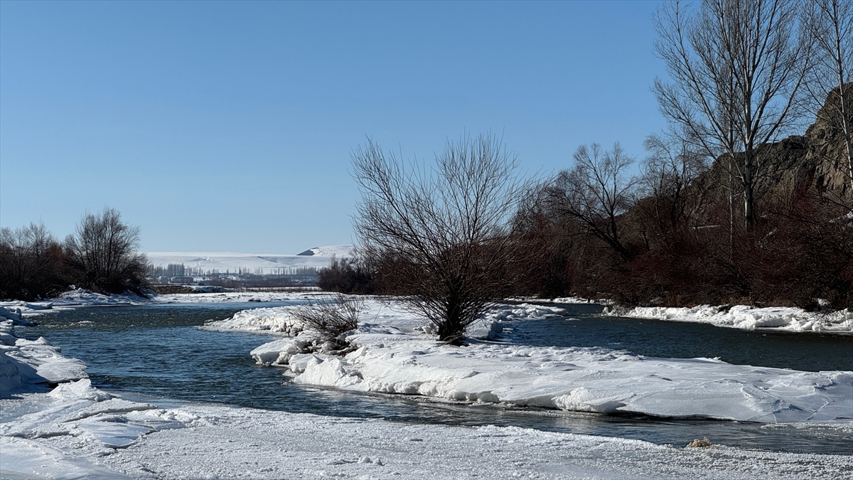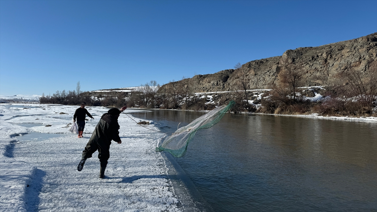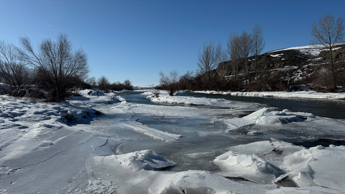 Bazı vatandaşlar da büyük bölümü buz tutan nehirde balık avlamaya çalıştı.