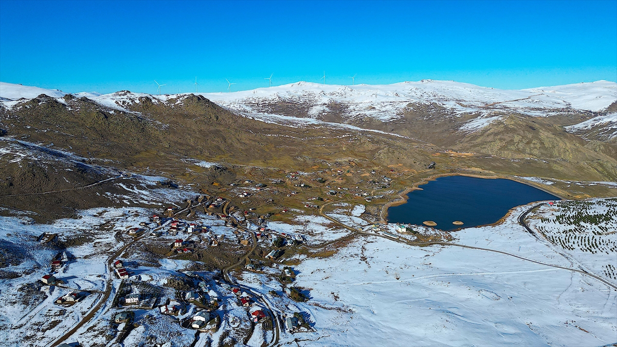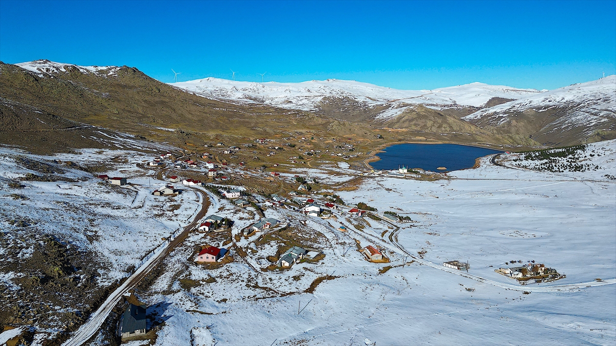 Karla kaplanan 3 bin rakımlı yaylalar dronla görüntülendi.