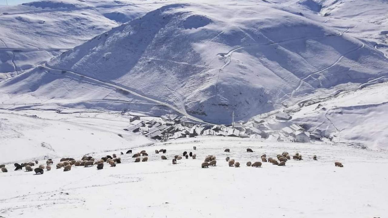Arazinin tamamen karla kaplandığı köylerde dışarı salınan küçükbaş hayvanlar yiyecek ot bulmakta zorlandı.