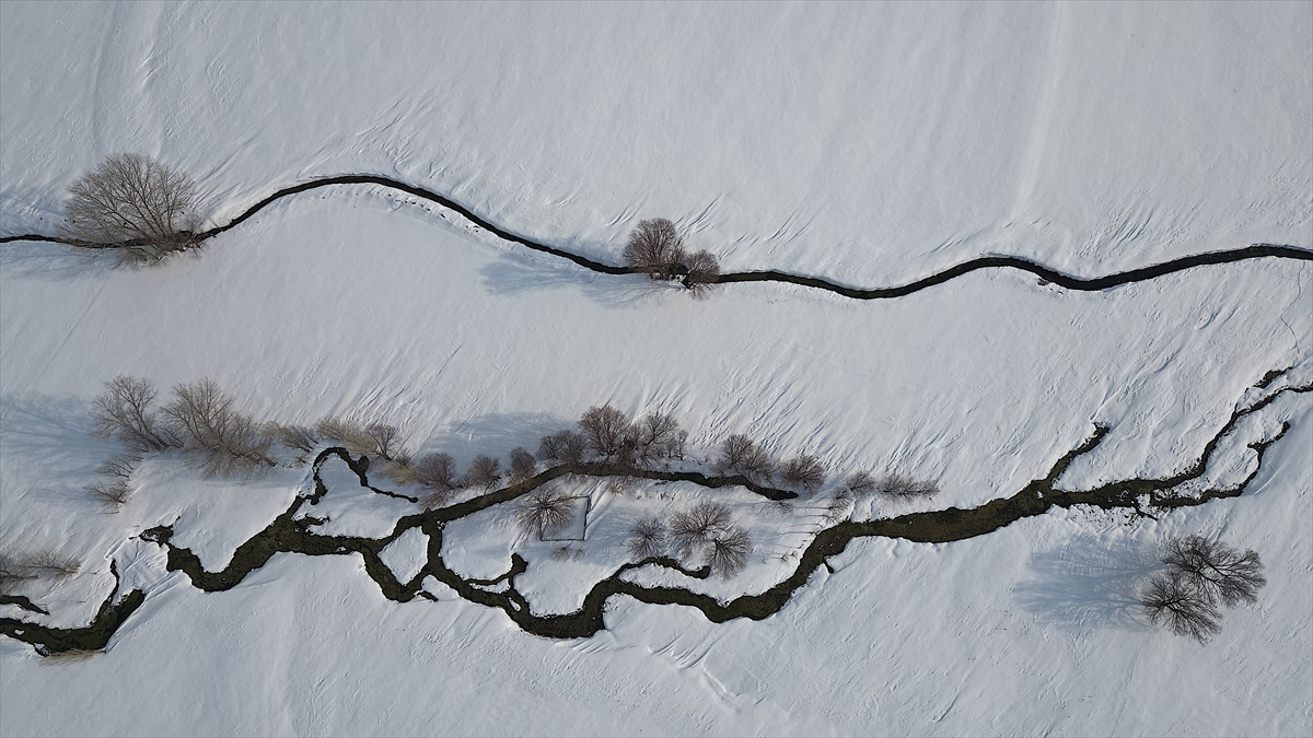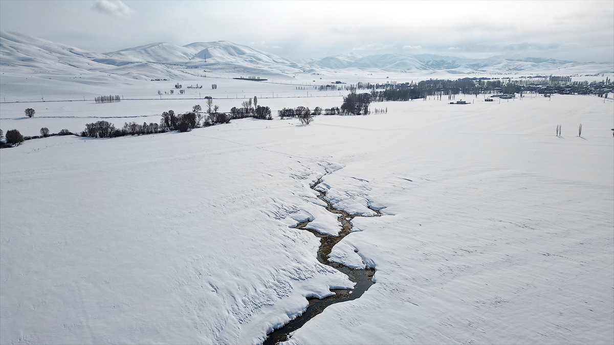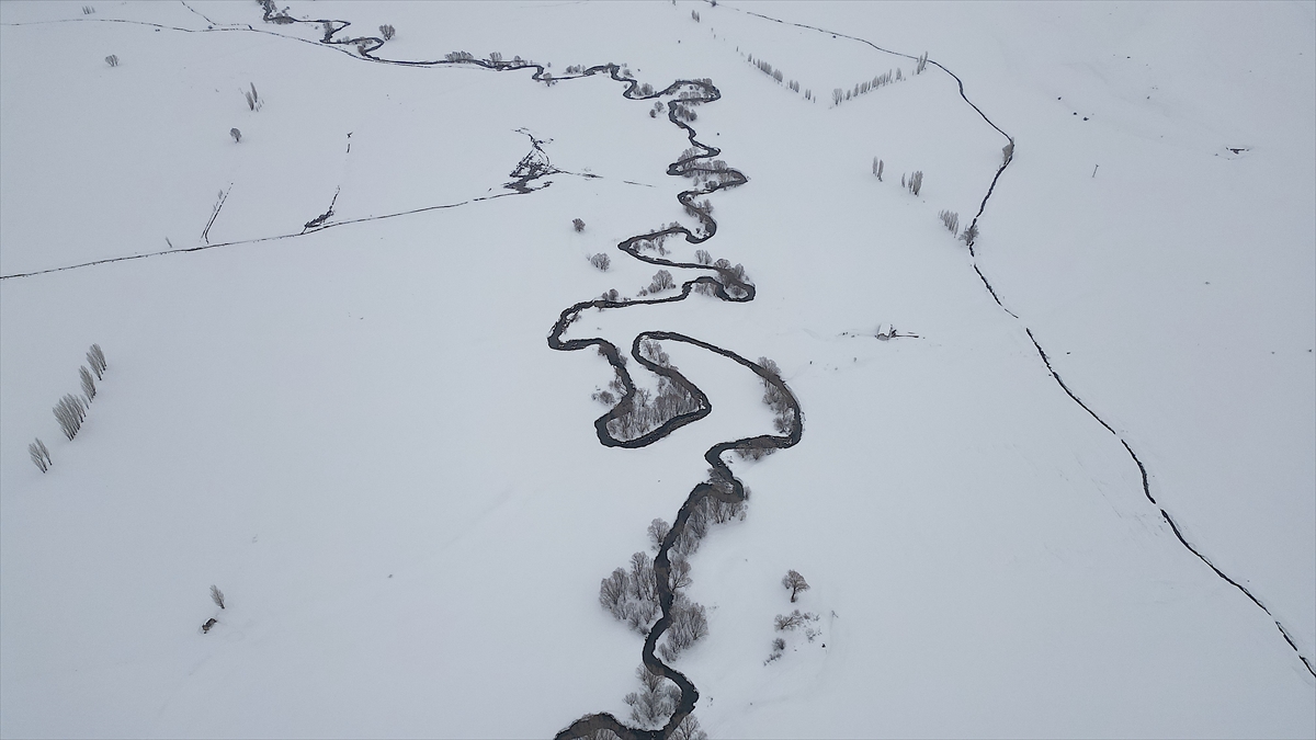 Yaz aylarında bölgedeki köylerin otlak ile su ihtiyacını karşılayan ova ve menderesler kar yağışının ardından beyaz örtüyle kaplandı.