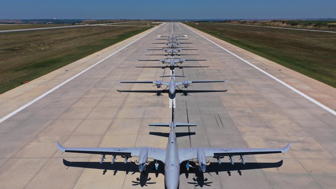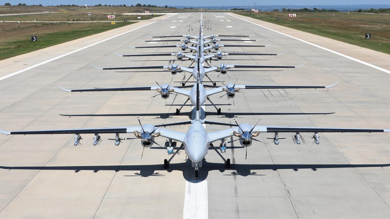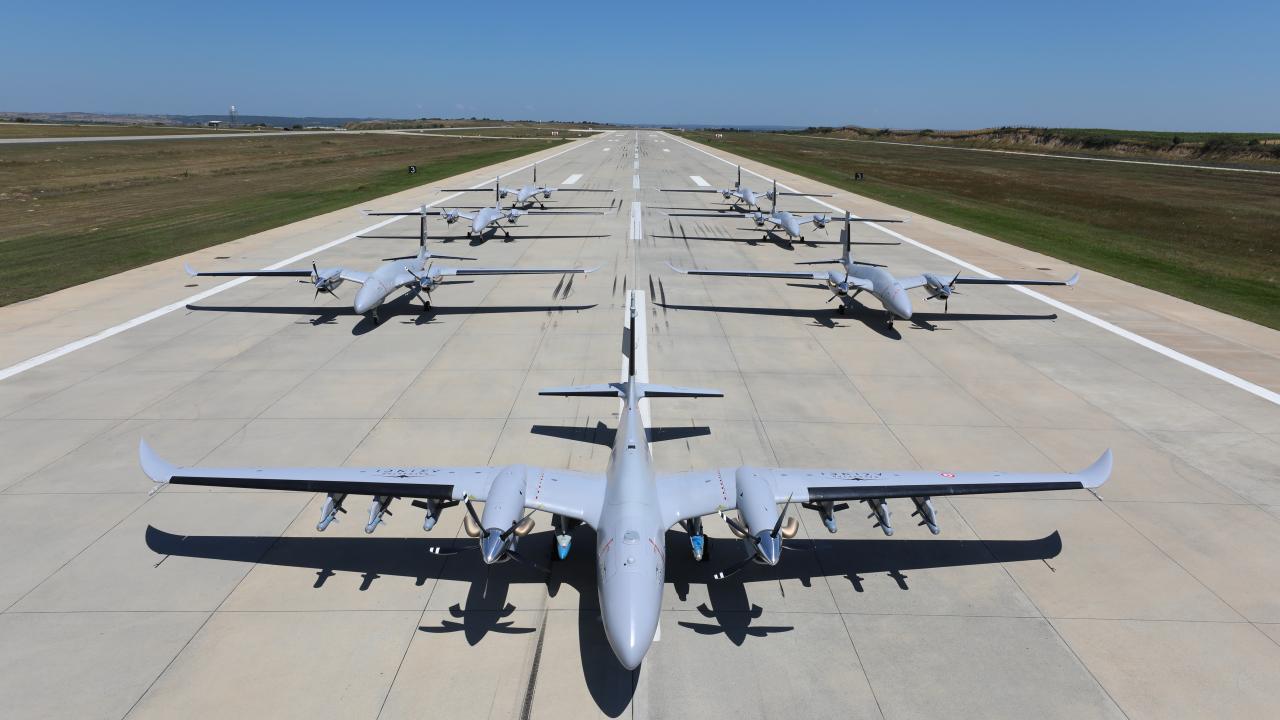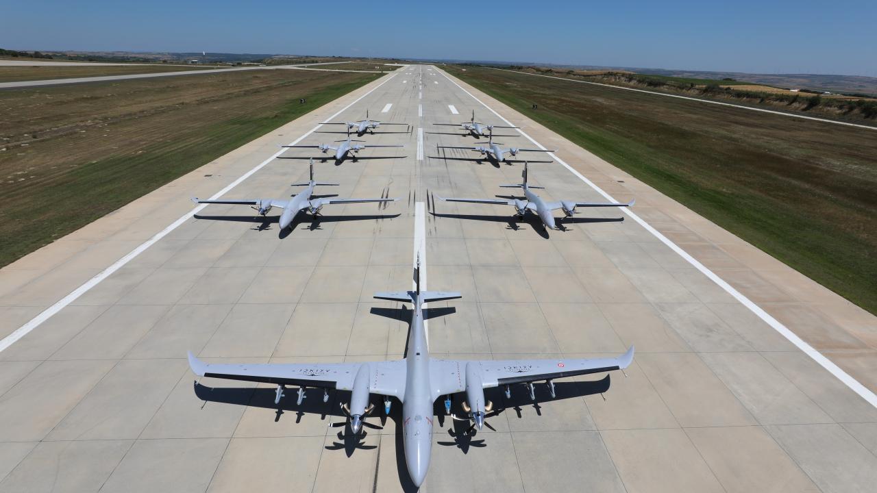 Çorlu Hava Meydan Komutanlığı’nda bulunan eğitim ve test faaliyetleri için kullanılan 3 AKINCI TİHA ile Hava Kuvvetleri Komutanlığı`na teslim edilecek olan 4 AKINCI TİHA birlikte fotoğraf ve video çekimine katıldı.