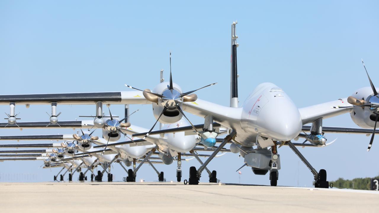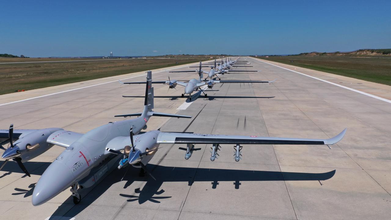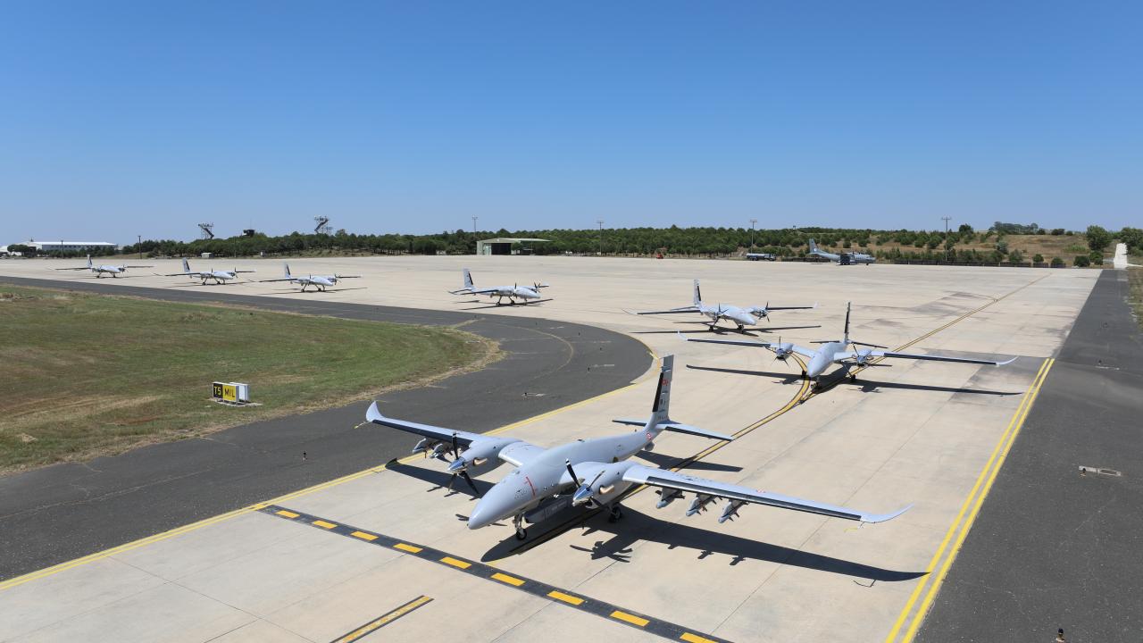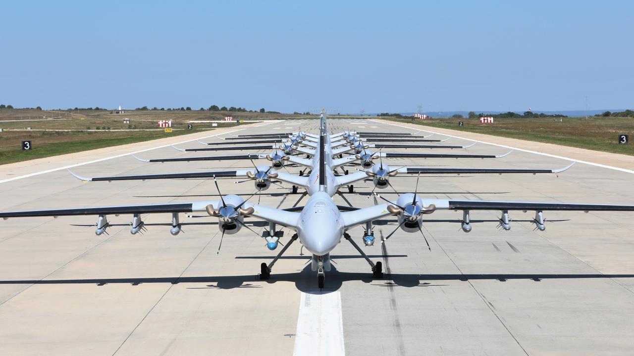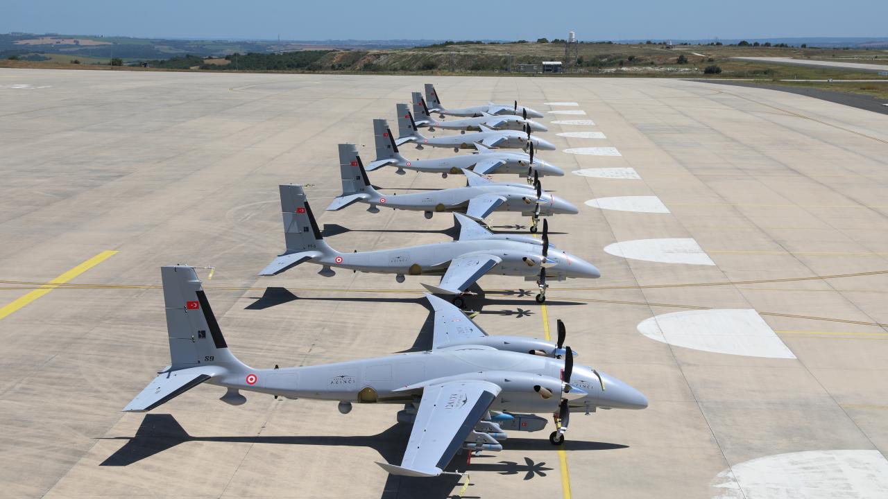 Çorlu Hava Meydan Komutanlığı’nda bulunan eğitim ve test faaliyetleri için kullanılan 3 AKINCI TİHA ile Hava Kuvvetleri Komutanlığı`na teslim edilecek olan 4 AKINCI TİHA birlikte fotoğraf ve video çekimine katıldı.