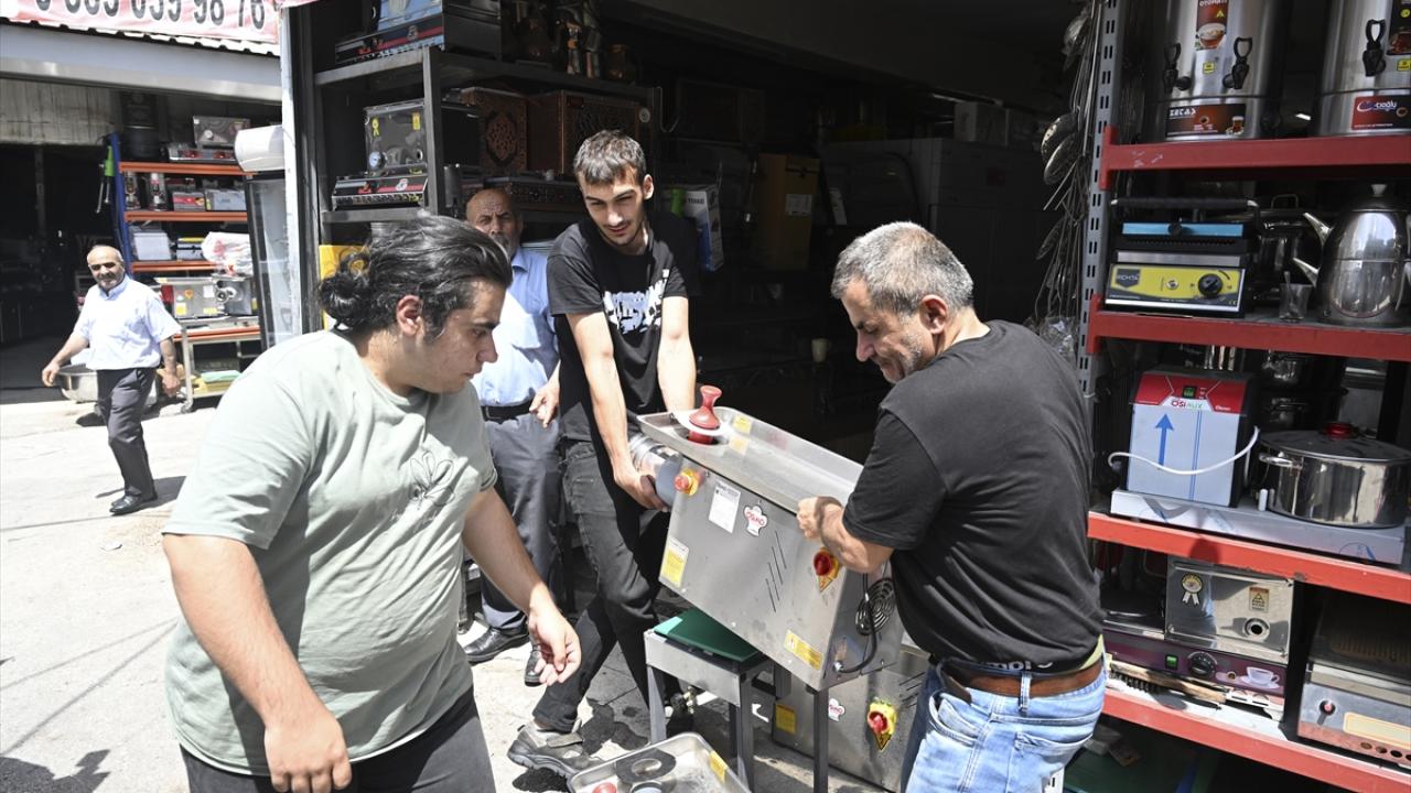 Kurban Bayramı öncesi alışveriş merkezleri ve pazar yerlerinde yoğunluk yaşanırken, Ankara'nın Ulus semtindeki İtfaiye Meydanı'nda da tükecilerin dondurucu ve kıyma makinesine talebi arttı.