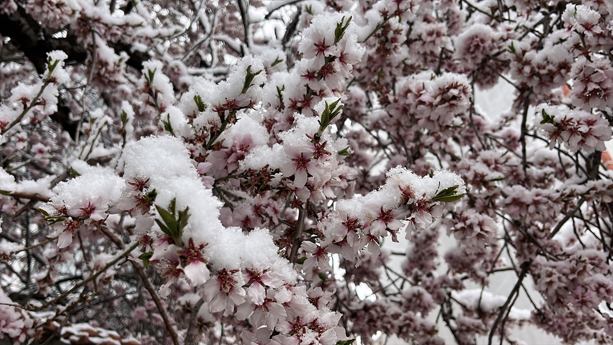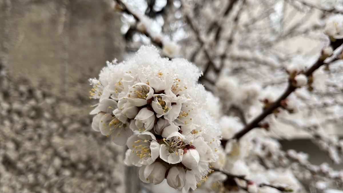Kar nedeniyle evlerin çatıları ile araçların üzeri beyaz örtüyle kaplanırken, çiçek açan meyve ağaçları da kar altında kaldı.