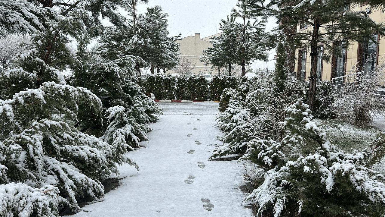 Yozgat kent merkezi, nisan ayında kar yağışı sonrası beyaz örtüyle kaplandı.