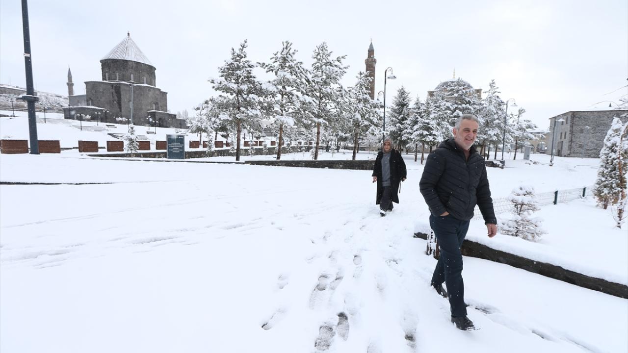 Kars`ta dün gece başlayan ve aralıklarla süren kar yağışıyla beyaza bürünen tarihi yapılar güzel görüntü oluşturdu.